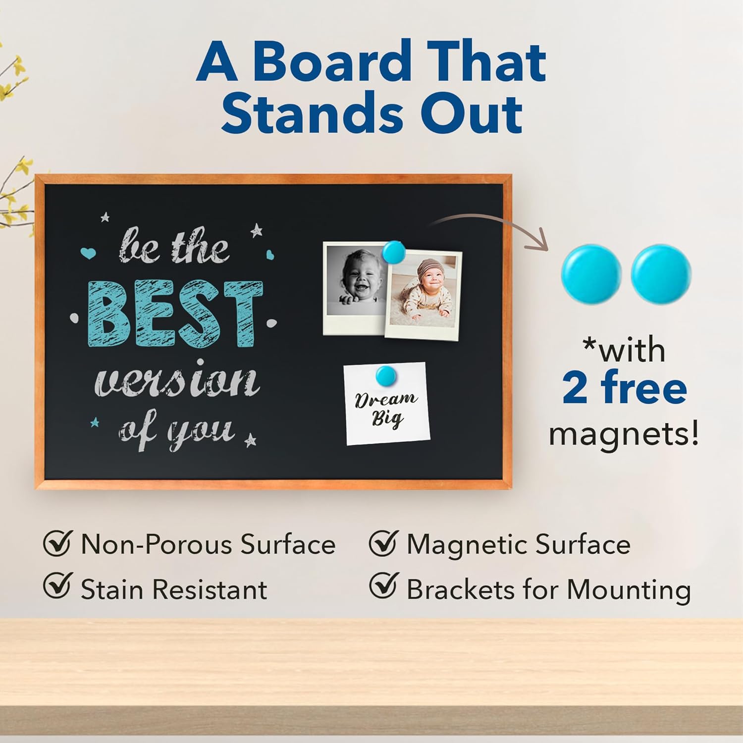 - STRONG MAGNETIC SURFACE - Our chalkboard isn't just for chalk; its strong magnetic surface effortlessly holds all your favorite magnets, offering additional ways to post notes or hang decorations.