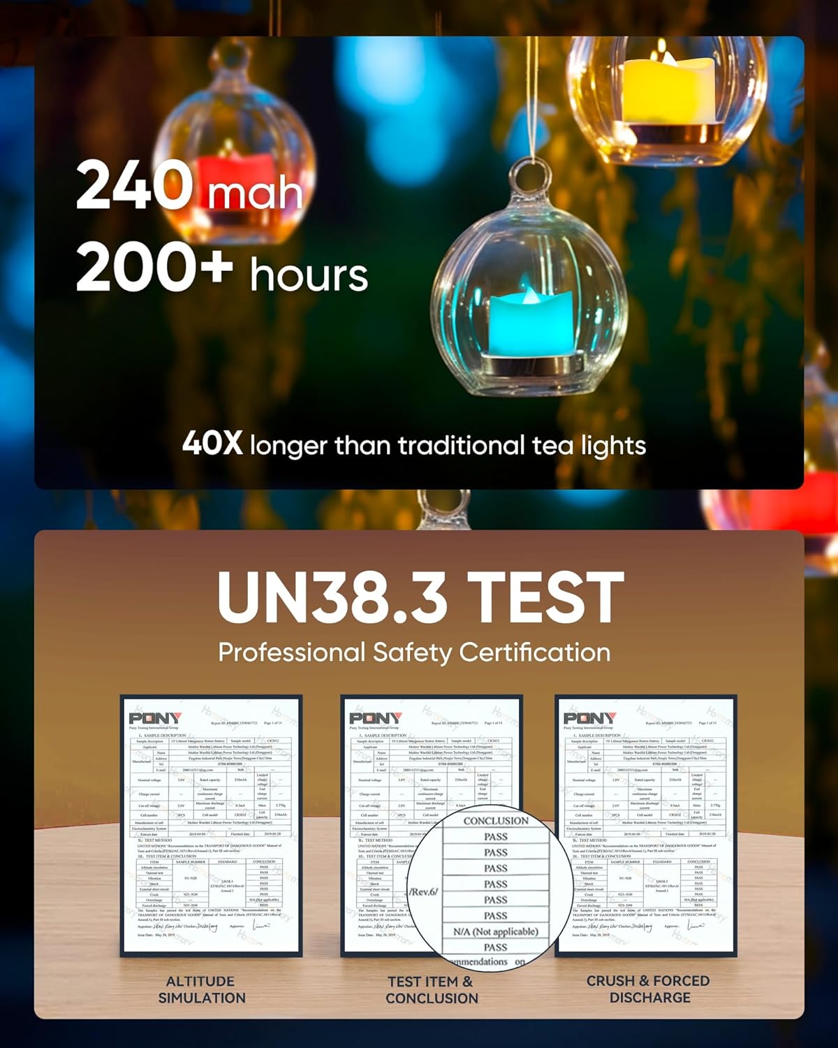 - 200+HOUR: 240mah battery capacity provides 200 hours of illumination, 40X to traditional wax tea lights, ensuring the tea candles work last throughout your events/party/holidays