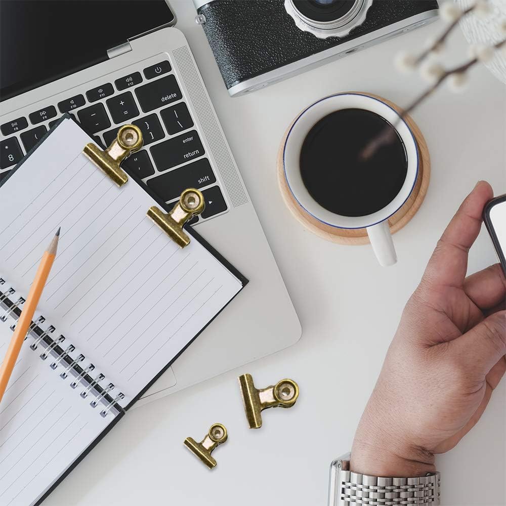 20 Pack Metal Clips with 20 Push-pins for Corkboard,Bulldog Clips for Hanging Pictures,Small Hinge Clips for Crafts,Mini Binder Clips Paper File Clamps for Office School(Bronze,1.2inch)