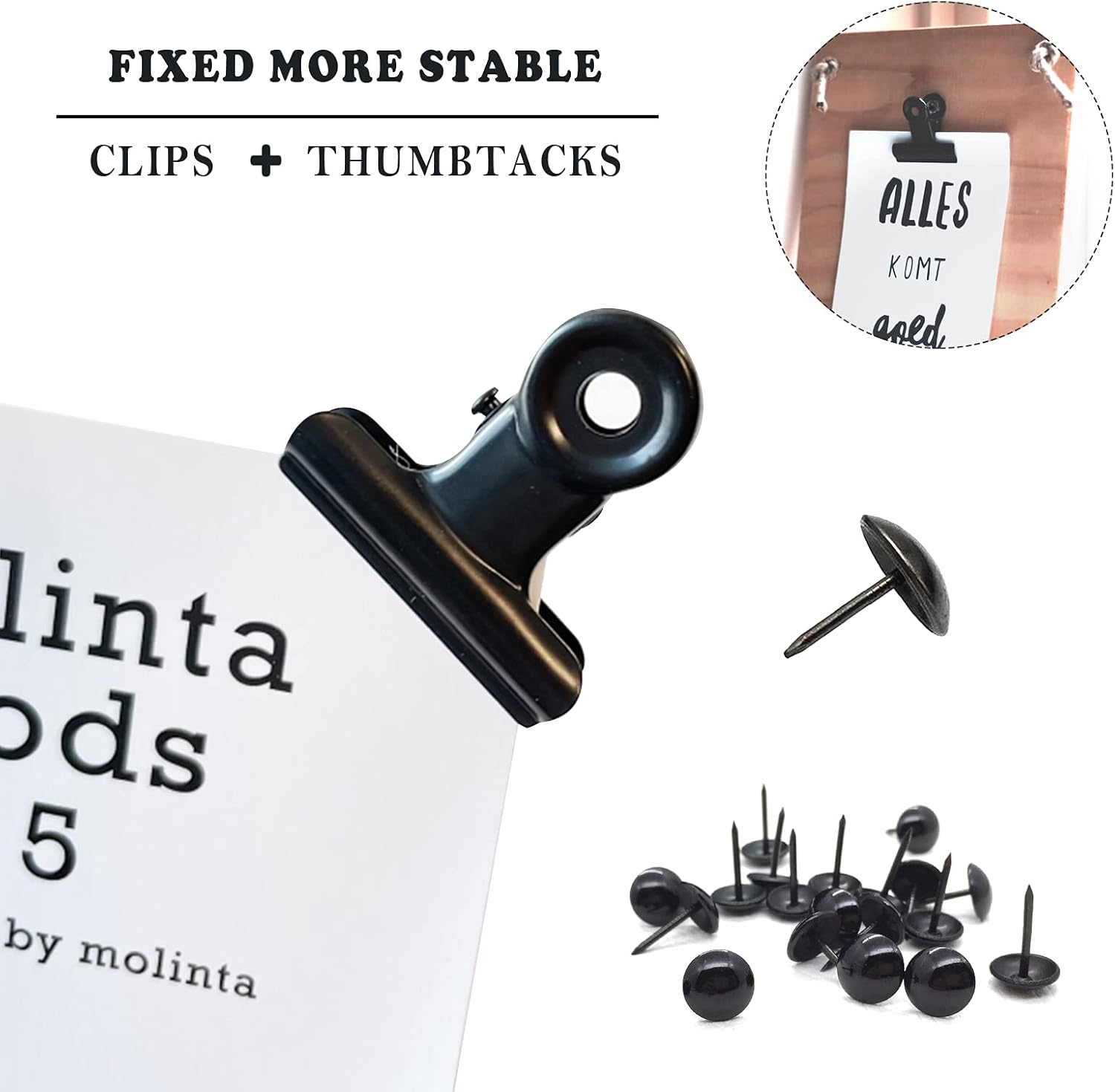 20 Pack Metal Clips with 20 Push-pins for Corkboard,Bulldog Clips for Hanging Pictures,Small Hinge Clips for Photos Crafts,Mini Binder Clips Paper File Clamps for Office(Black,1.2inch)