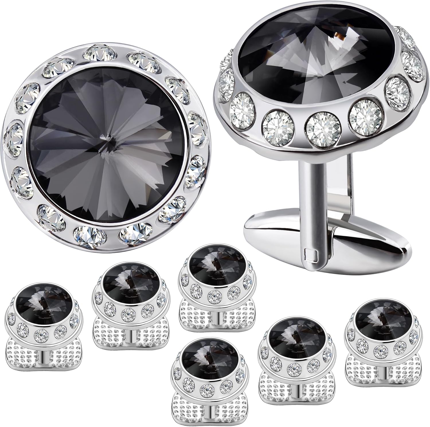 - 【Match with Men’s Wear and Accessories easily】HAWSON tuxedo cufflinks and studs with grey crystal complement any suit and Shirt, not only with classic white, black, blue and red clothes, but also with brown, pink and green accessories (neckties, necklaces, brooches, etc.) necessary for weddings.