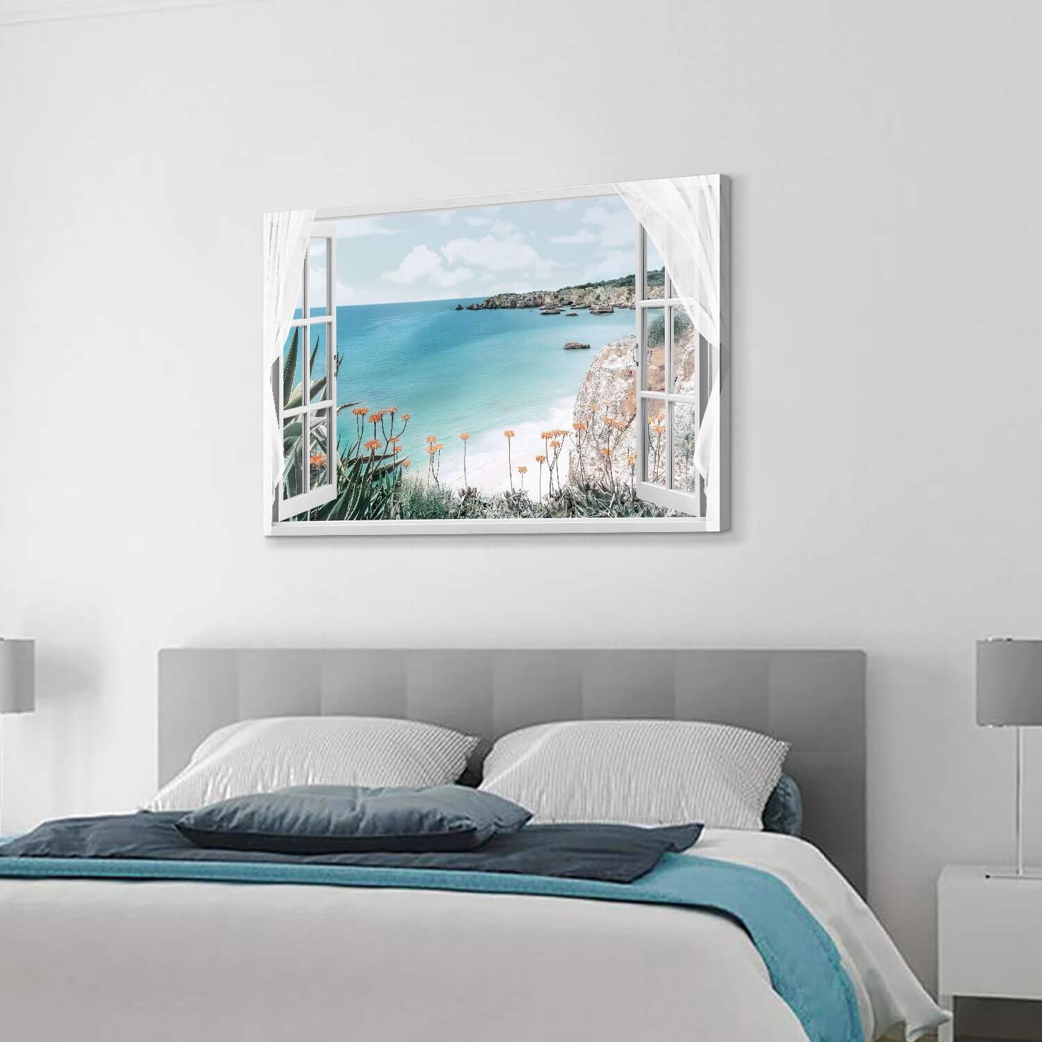 - Coastal Artwork for Wall: All of canvas prints beach window picture are carefully packaged with corner protection to ensure safe delivery, hardware included for easy installation