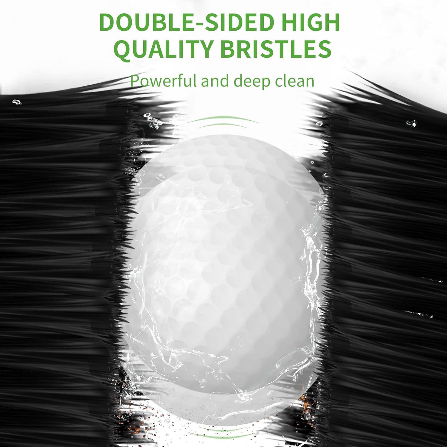 - Double Bristles: Built-in cleaning brush won't get your hands dirty, clean your golf clubs and golf balls anywhere, provides better ball flight, cleaner club grooves, and better back spin.
