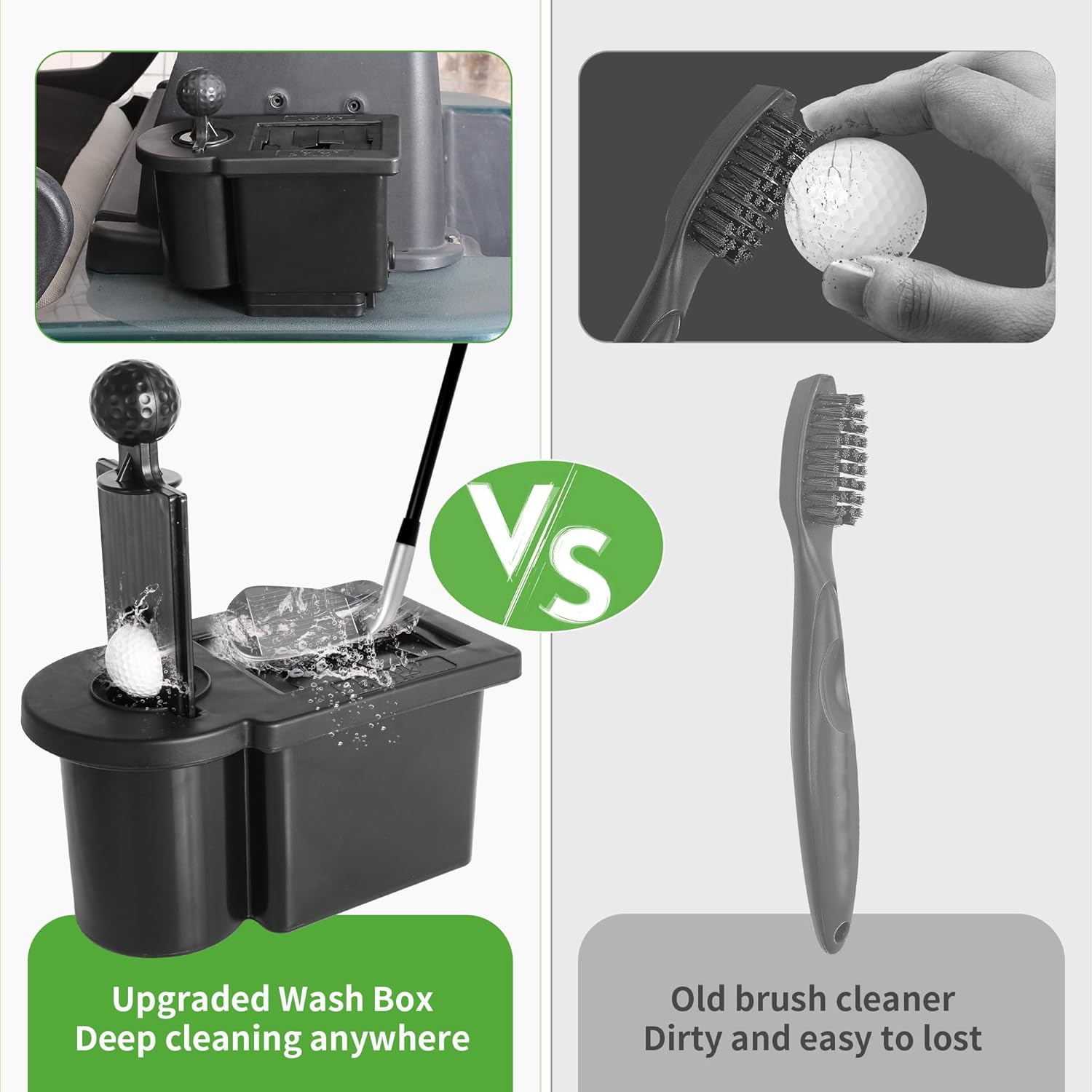- Easy Cleaning & Drainage: Includes club washing slot and ball washing slot,clean golf balls and clubs at the same time, and the plug on the bottom makes it easy to drain and clean out sediment.