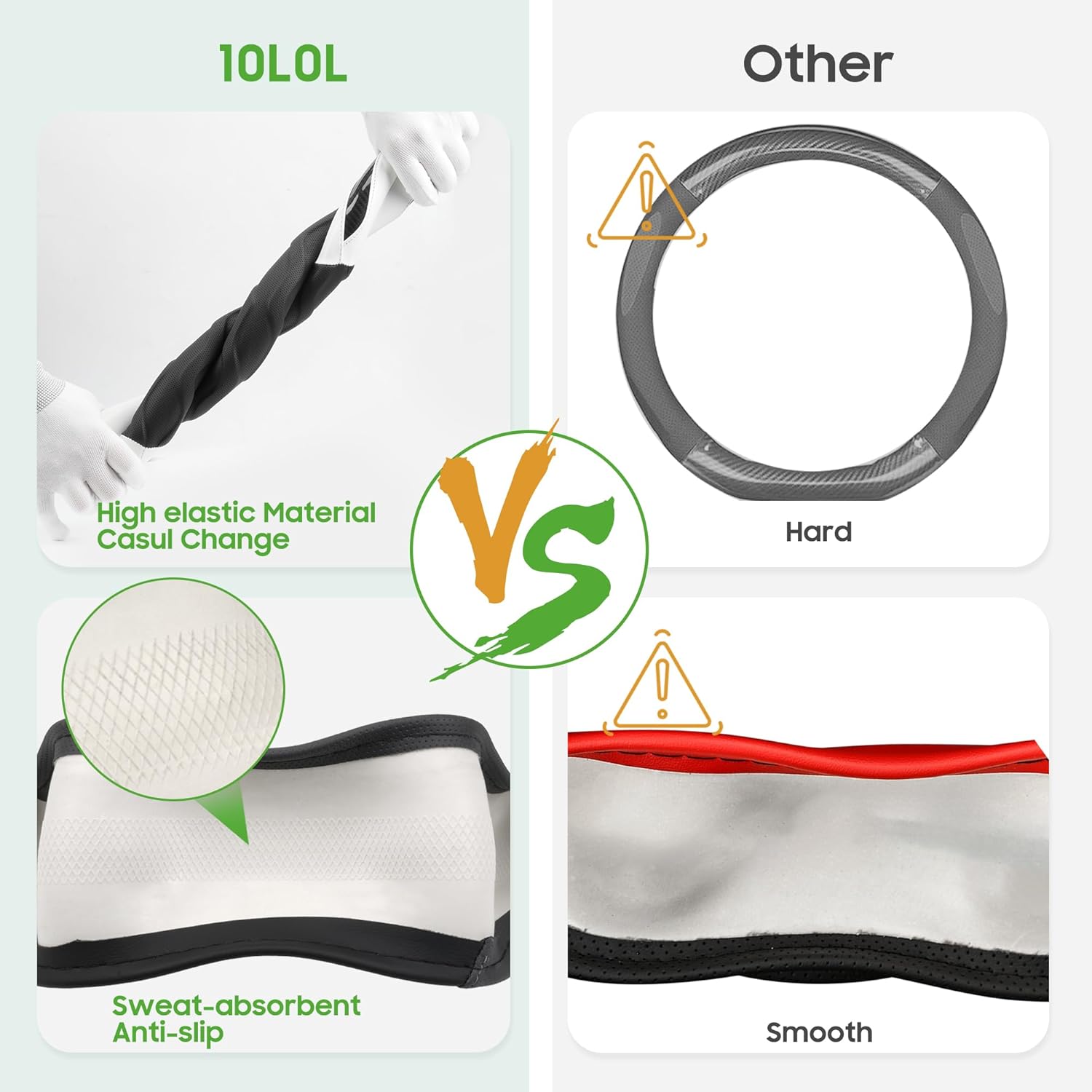 - Made of durable PU leather with sports detailing carbon fiber pattern, perfect decor for your golf cart, also protect your steering wheel