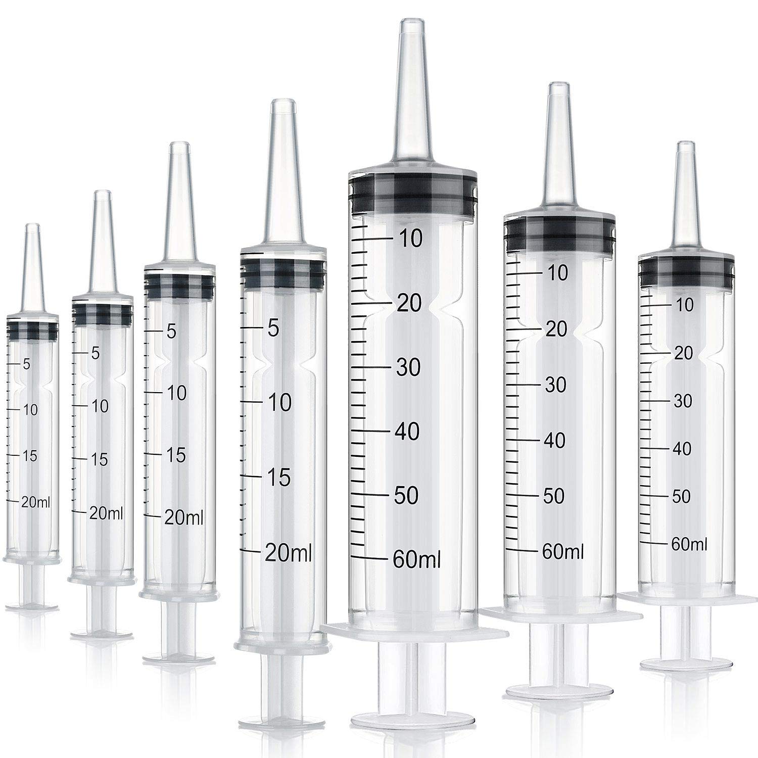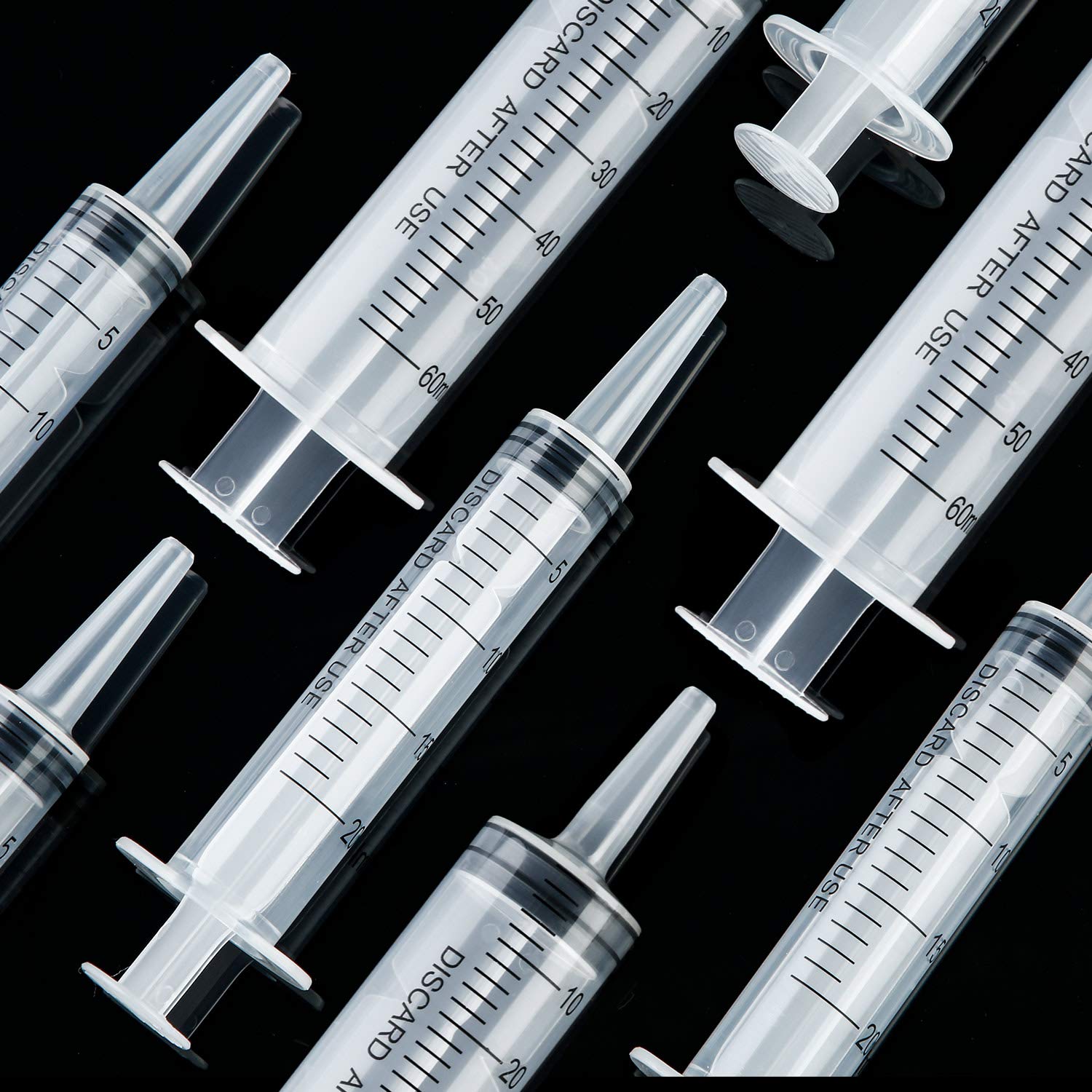 10 Pack Plastic Syringe Liquid Measuring Syringes Without Needle for Epoxy Resin, Craft, Scientific Labs, Feeding Pets Animals, Oil or Glue Applicator (20 ML, 60 ML)