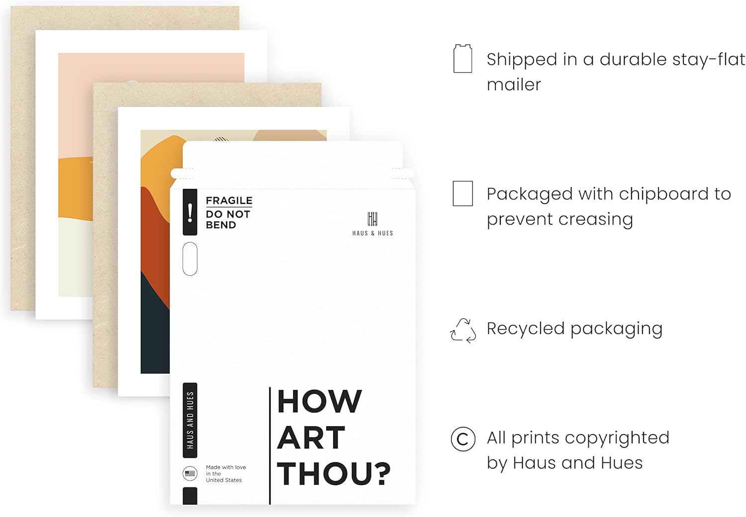 - QUALITY GUARANTEED: Buy Haus & Hues wall art and decor online with confidence. We take extra care to ensure these 6 unframed home wall art prints arrive at your door in pristine condition in 100% recycled paperboard packaging. If there are any problems with your order, we’re happy to offer a replacement