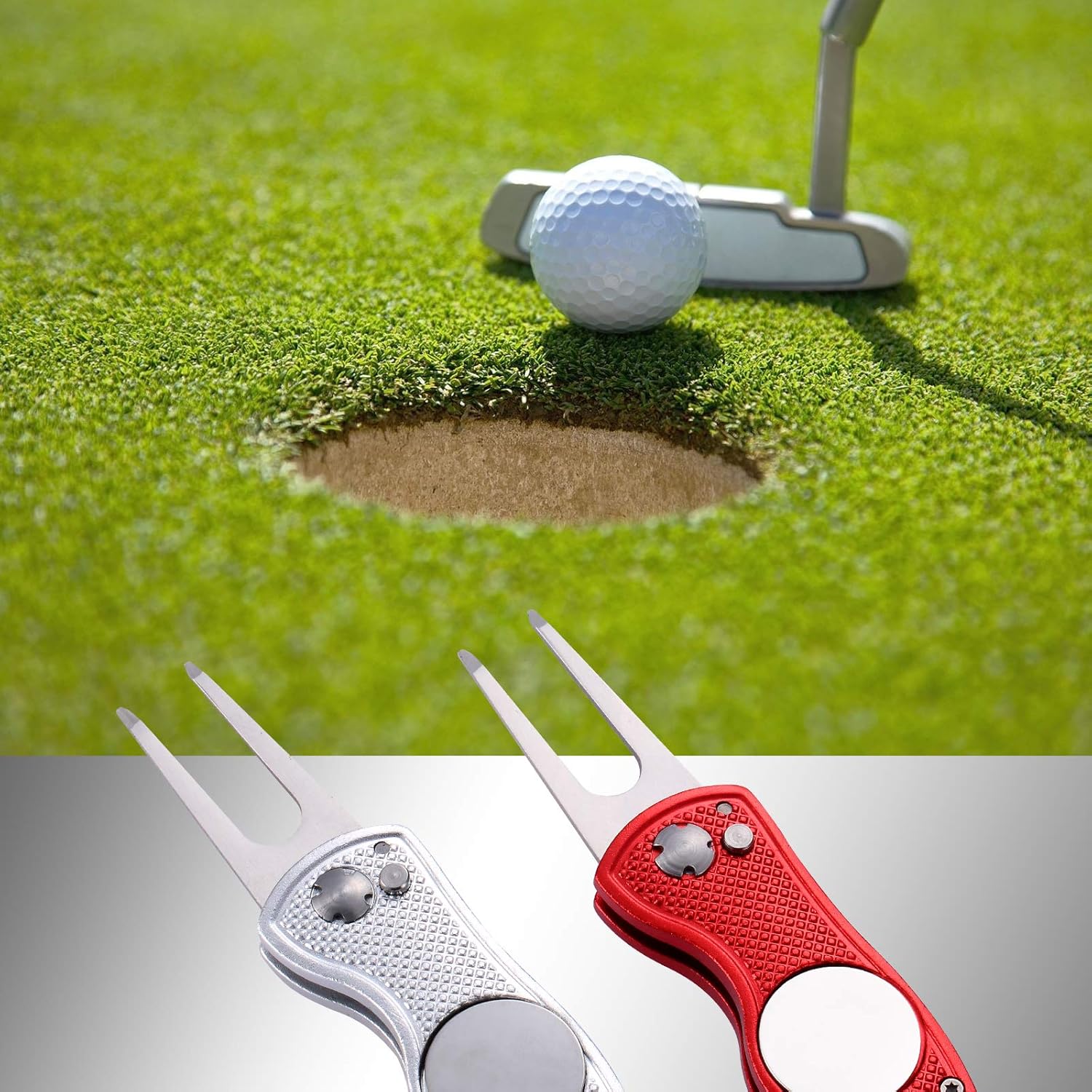 - WHAT YOU GET: 2 Packs of Metal Foldable Golf Divot Tools in different colors. If you have any questions, feel free to contact us