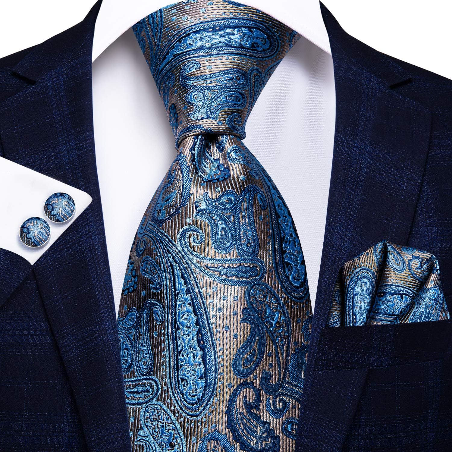 • You Can Get:Include 1*63 inches silk necktie + 1*pocket square + 1 pair of cufflinks.The pattern and fabric of the tie set remain consistent,solving the matching problem for you