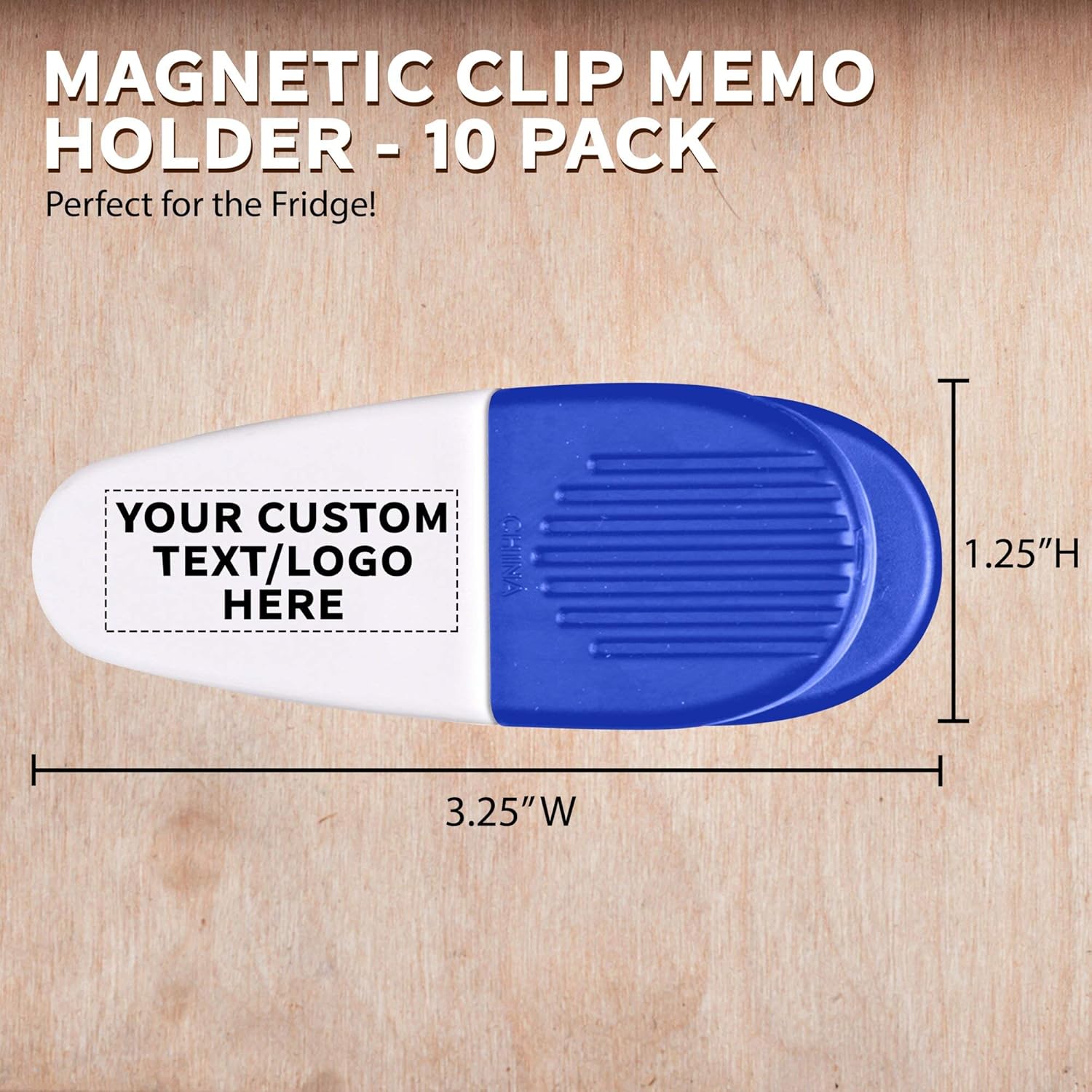 10 Magnetic Memo Holders Set - Customizable Text, Logo - Large Clip, Plastic - White Blue