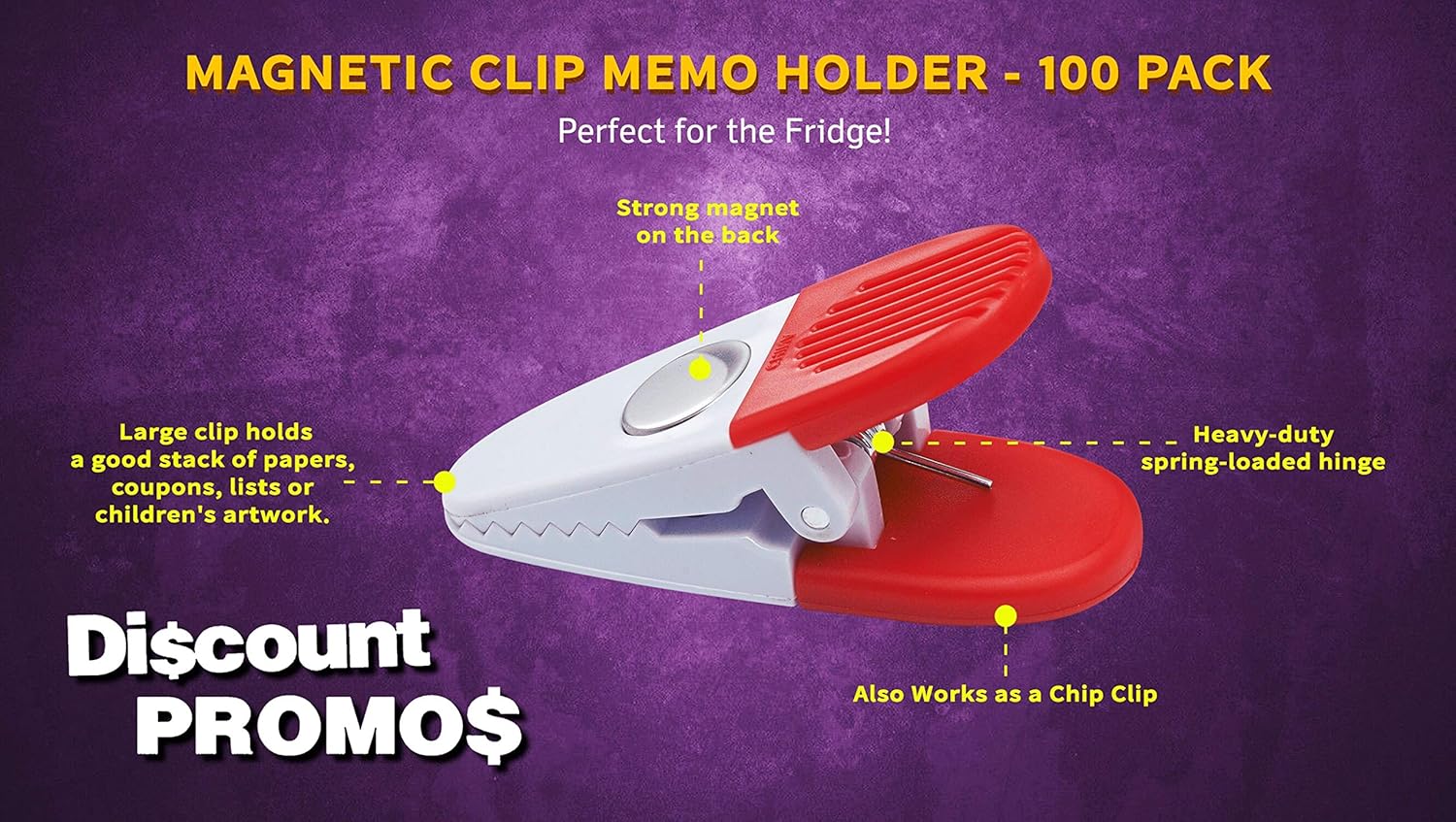 100 Magnetic Memo Holders Set - Customizable Text, Logo - Large Clip, Plastic - White Red