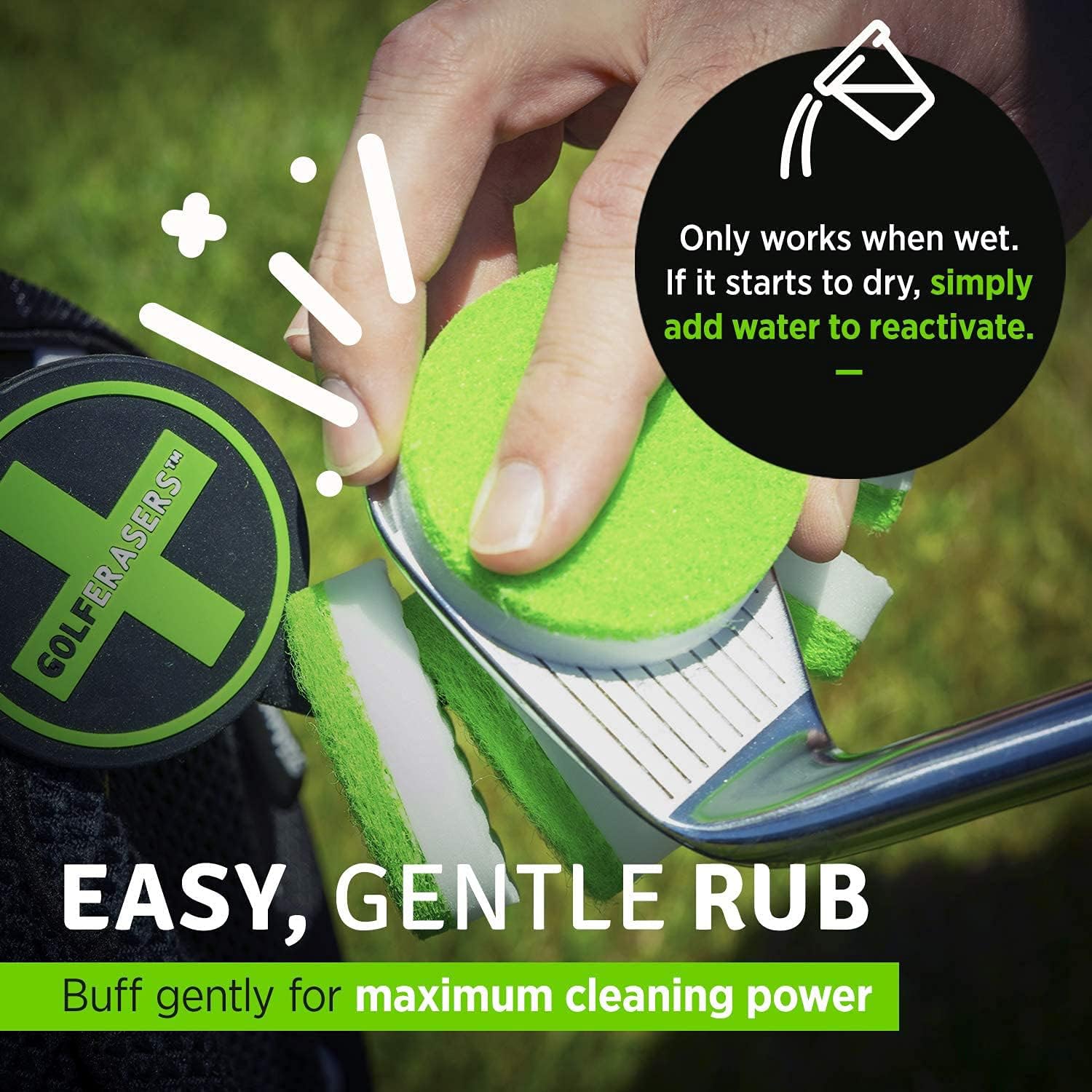 - EASY AND GENTLE CLEANING: GolfERASERS are designed for maximum cleaning power with minimal effort. Just add water and gently swipe the sponge across the club face or golf ball and watch as dirt and grime are easily lifted away. There's no need for vigorous rubbing or added pressure, making it a perfect choice for maintaining the quality and performance of your golf gear.