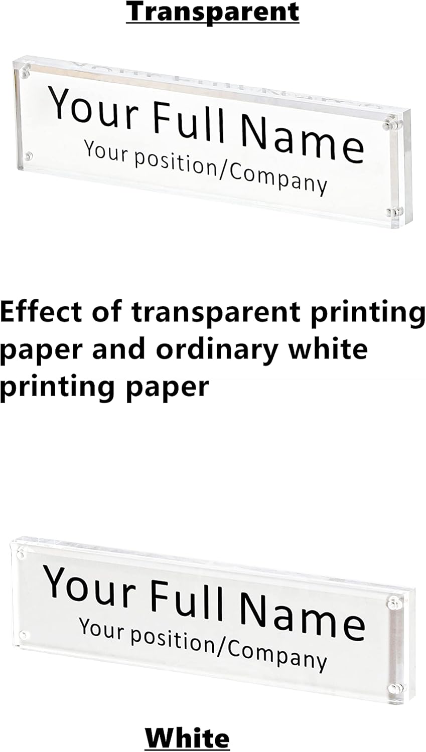 - DIY OFFICE NAME PLATE:You can print your name, title ,motto and logo which you like on paper then place it between the acrylic block,one personalized desk nameplate block has born!The full size is 2.5x10 inches, It can hold ,2.5x10''/2x10''/2x8''/2x6''or smaller one and a smaller picture will leave a border for a floating effect