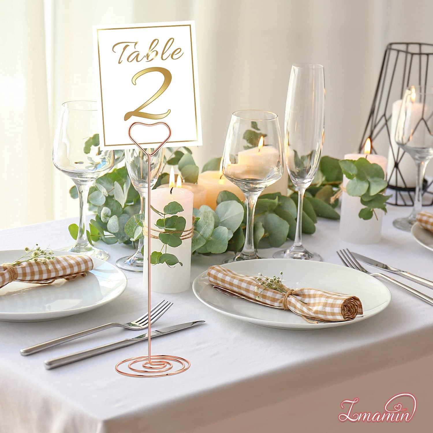 16pcs Place Card Holders, 8.75 Inches Tall Table Number Holders, Rose Gold Picture Holder for Tables with Heart Shaped Clip for Wedding, Photos, Food Signs, Memo Notes, Restaurant, Birthday