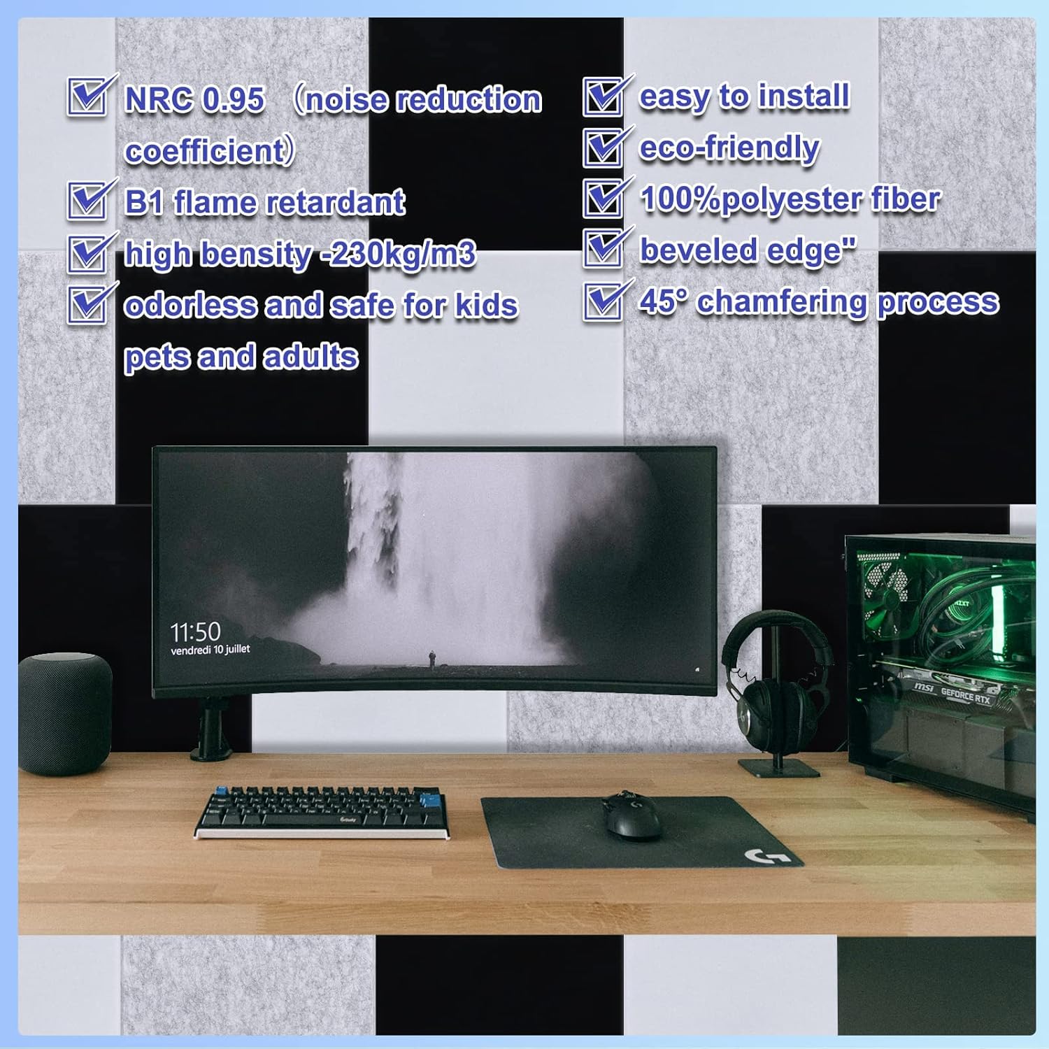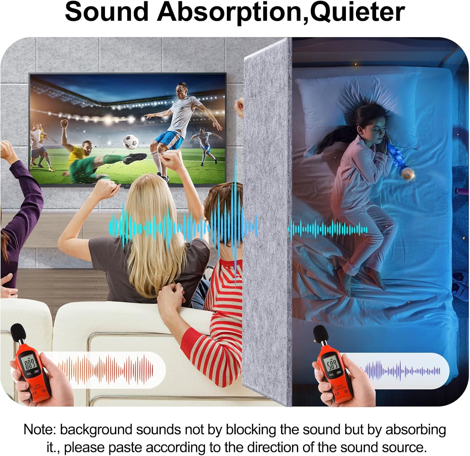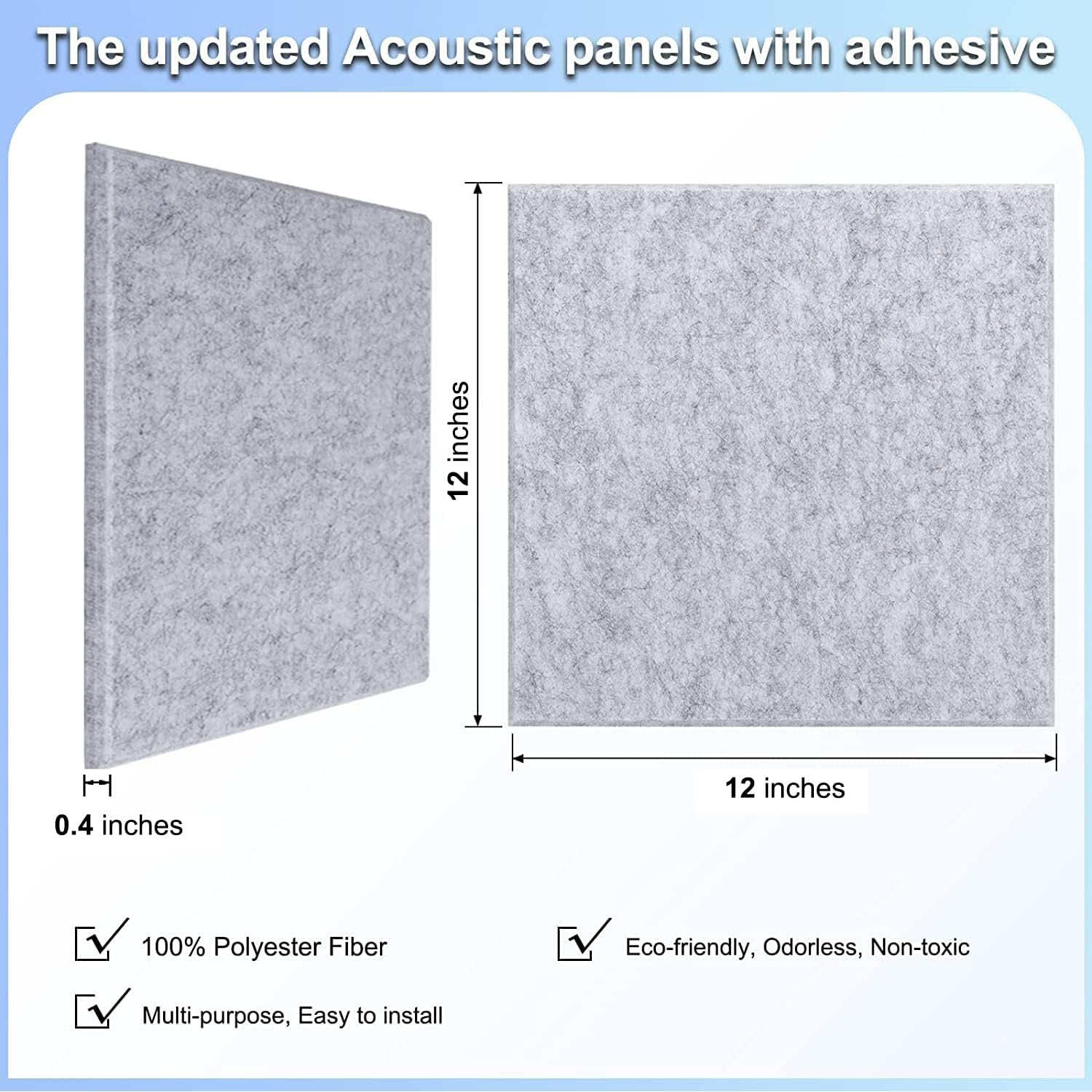 - 【Safe and Eco-Friendly】The sound insulation board is made of 215kg/m3 high density and eco-friendly polyester fiber, non-toxic and formaldehyde-free, which have an great advantage of reducing and absorbing noise. Safe to breathe and touch,it's safe for adults, kids, and pets!