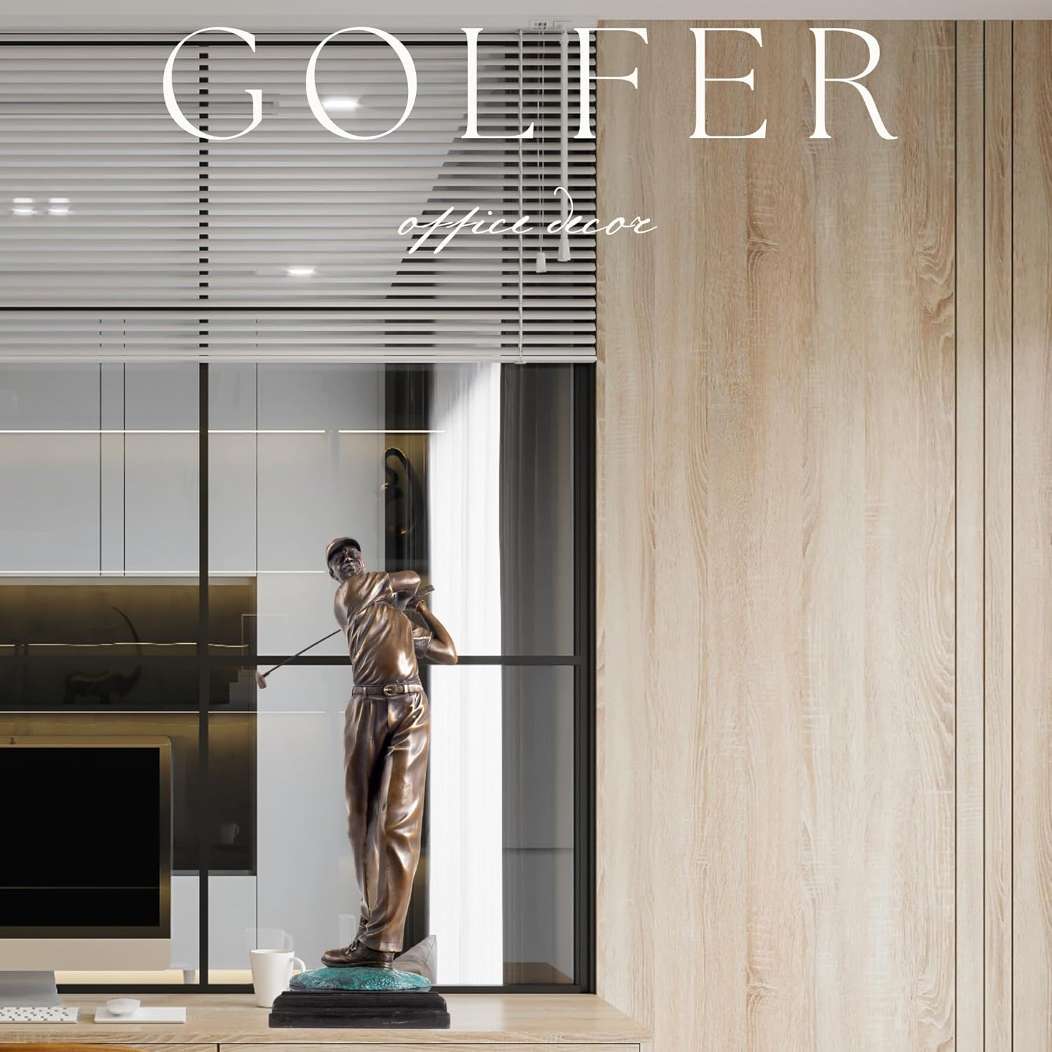 22.8'' Golf Man Bronze Statue, Classical Golfer Bronze Figurine Sculpture with Marble Base Modern Art Crafts for Home Office Decor Gift