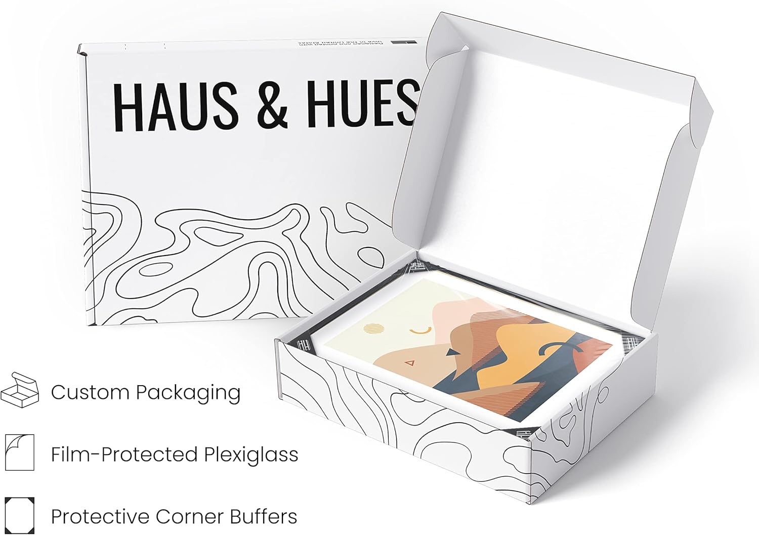 - PREMIUM WALL ART: To achieve the craftsmanship we’re known for, we use a printing technique on 14 pt semi-gloss paper. The paper used for our nature-inspired 8x10 art print abstract sets is sustainably sourced, and our inks are water-based. The mountain poster is equipped with plexiglass covered by protective film and two metal hangers for horizontal or vertical hanging. The boho wall art is shipped in a durable box for protection in transit.