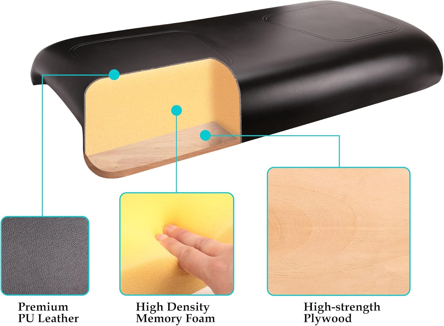 - Marine grade vinyl leather cover, high rebound sponge and high density plywood cushion bases