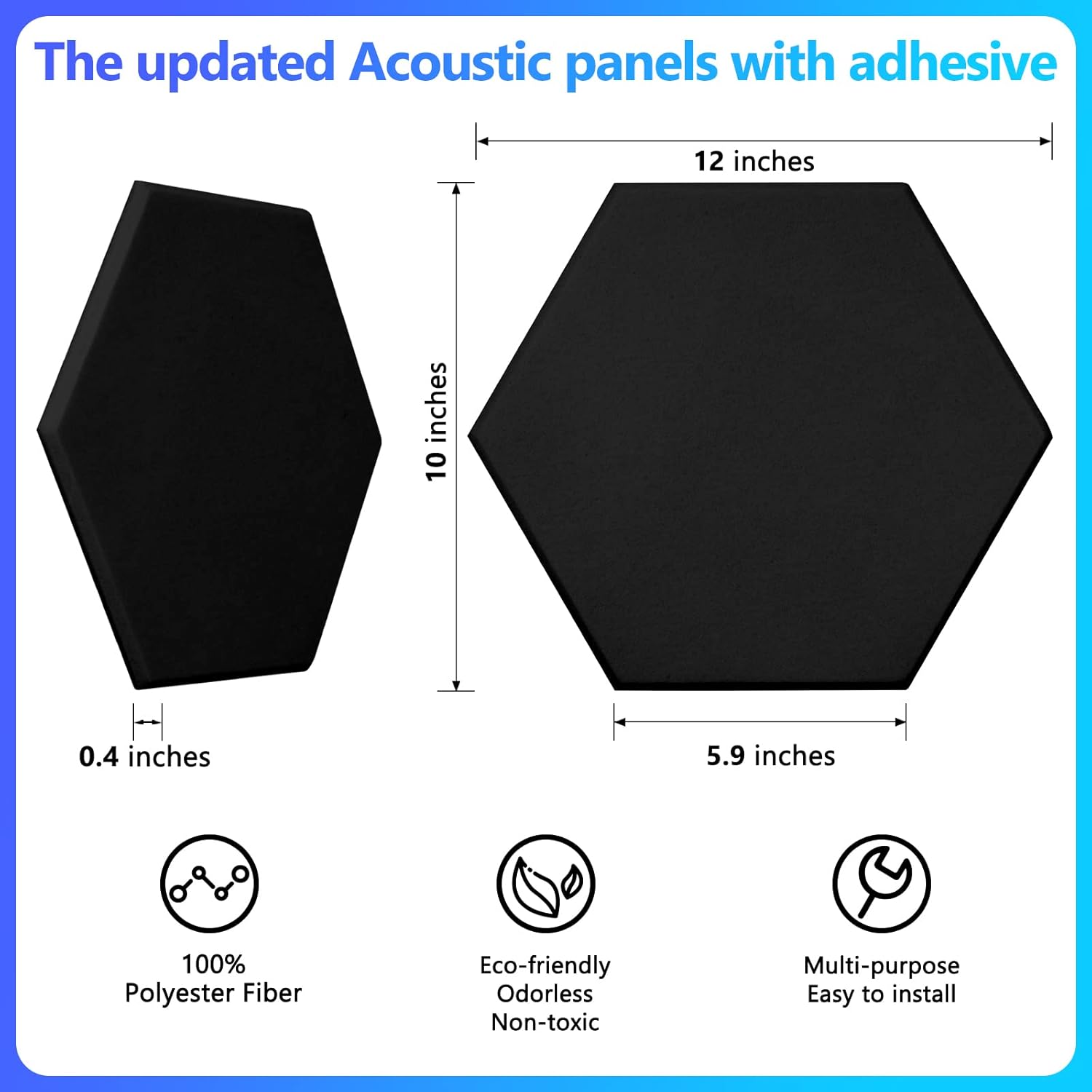 18 Pack Acoustic Panels-12"X10"X 0.4" Self-Adhesive Soundproof Wall Panels High-Density Sound Absorbing Panel Acoustic Treatment Panel Used in Home & Offices (Black Hexagon)