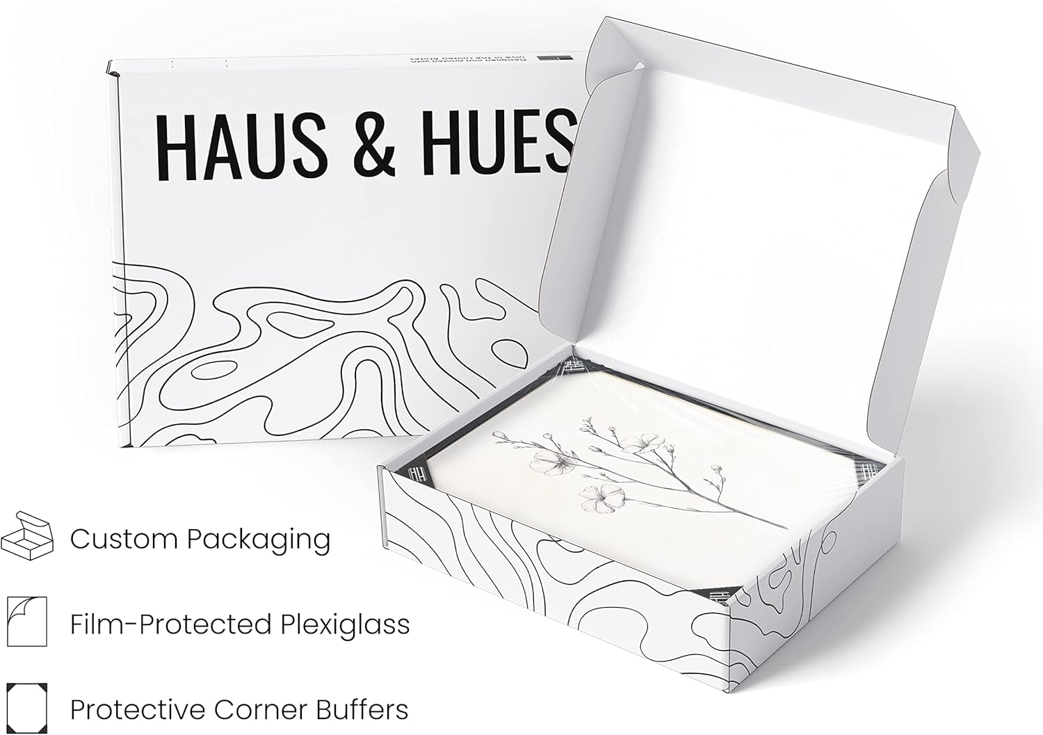 - PREMIUM WALL ART: To achieve the craftsmanship we’re known for, we use a printing technique on 14 pt semi-gloss paper. The paper used for our botanical artwork is sustainably sourced, and our inks are water-based. The black floral print is equipped with plexiglass covered by protective film and two metal hangers for horizontal or vertical hanging. The farmhouse decor is shipped in a durable box for protection in transit.