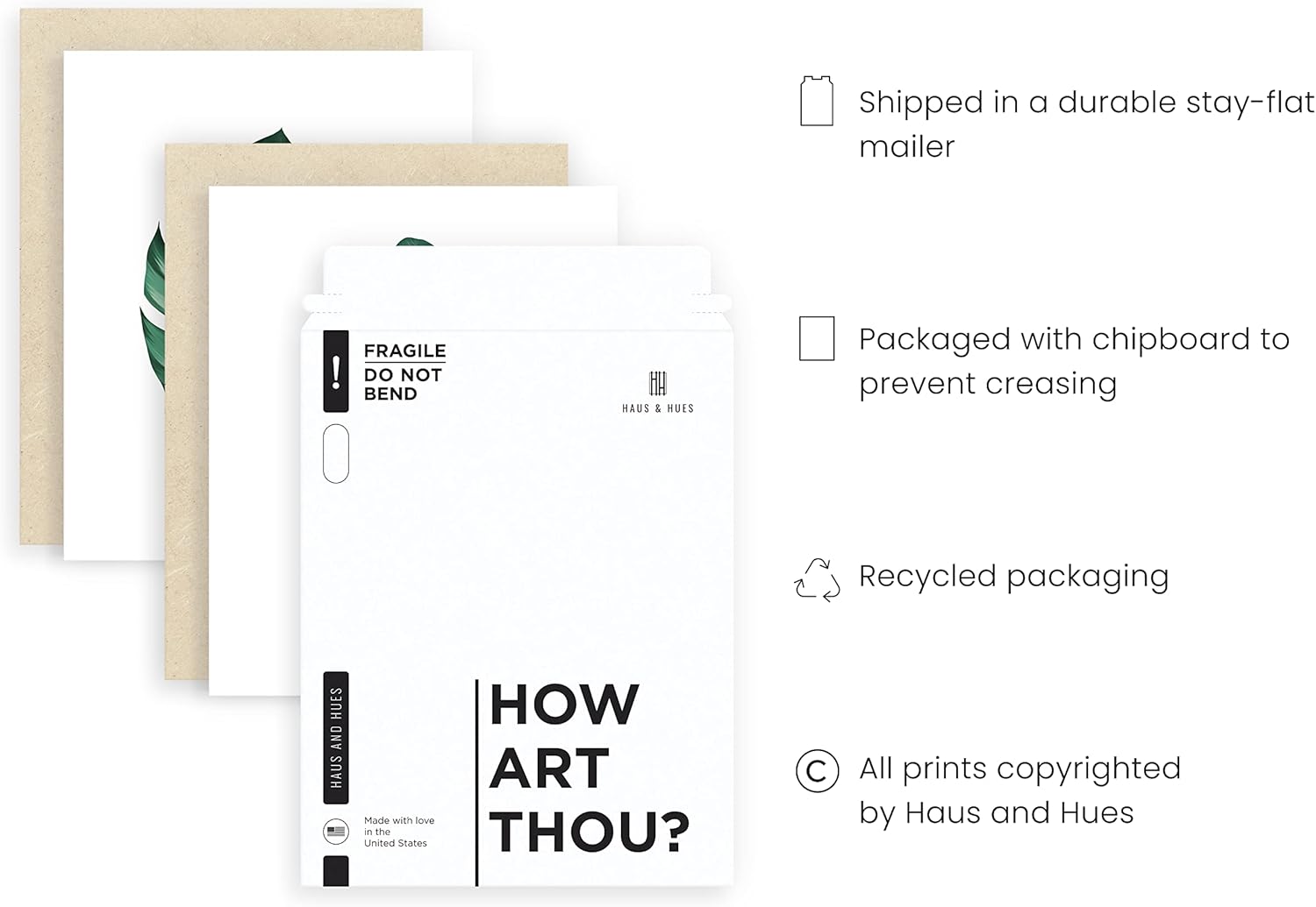 - TOP TIER QUALITY AND PACKAGING: Haus and Hues always ensure to only produce art prints using the finest art materials and technology. Our leaf print wall art is packaged with chipboard pads to protect against creases and dents, then shipped in stayflat mailers to preserve your plant art in transit, so you'll receive pristine green leaves pictures that are ready to frame or hang on your walls to attain excellent framework around your space