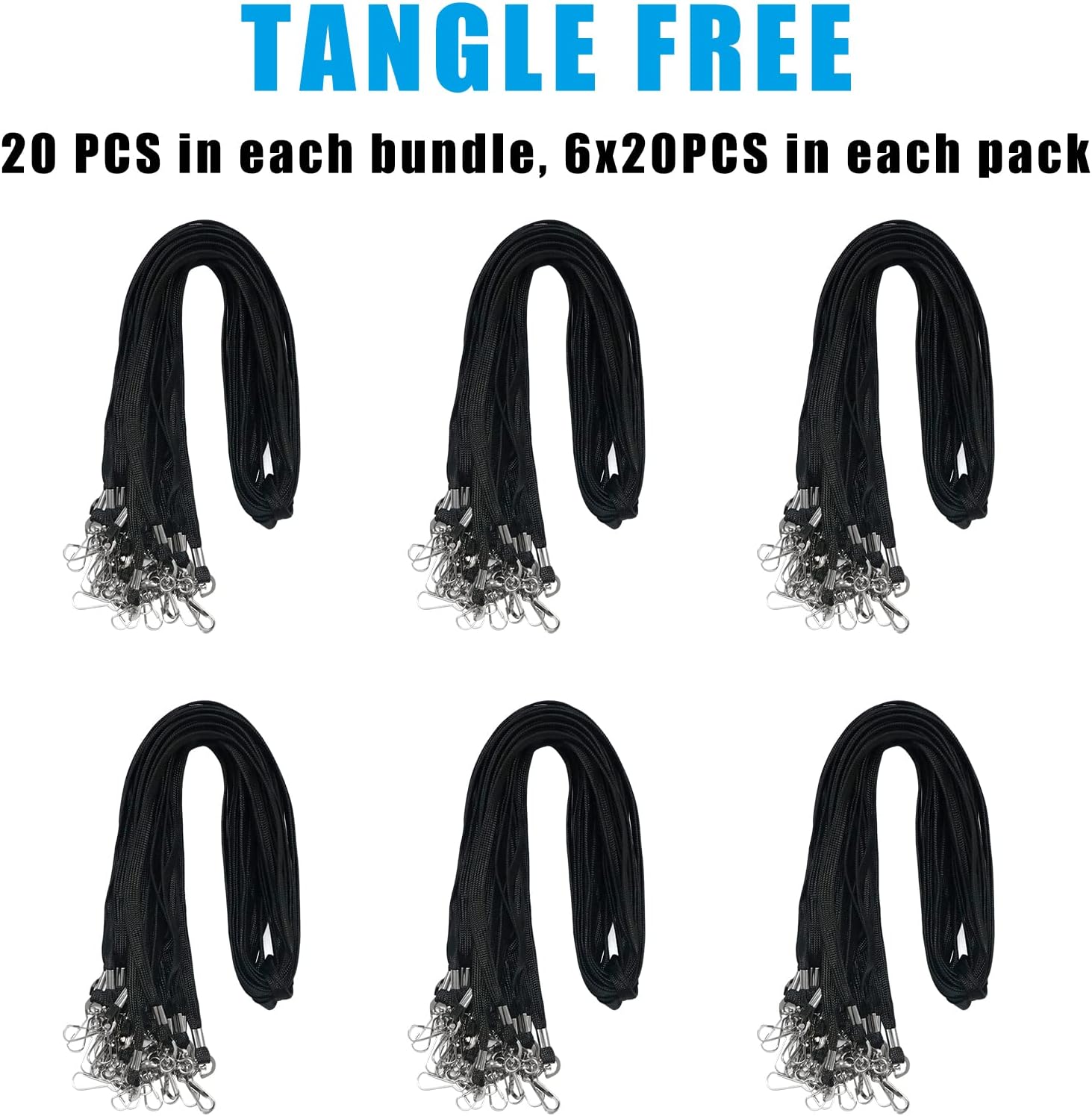 120 Pcs Black Lanyards Premium Bulk Flat Lanyards 36" with Swivel J Hook for ID Name Badge Holder, VIP, School, Kids, Coach, Conference, Festival and Hang Keys