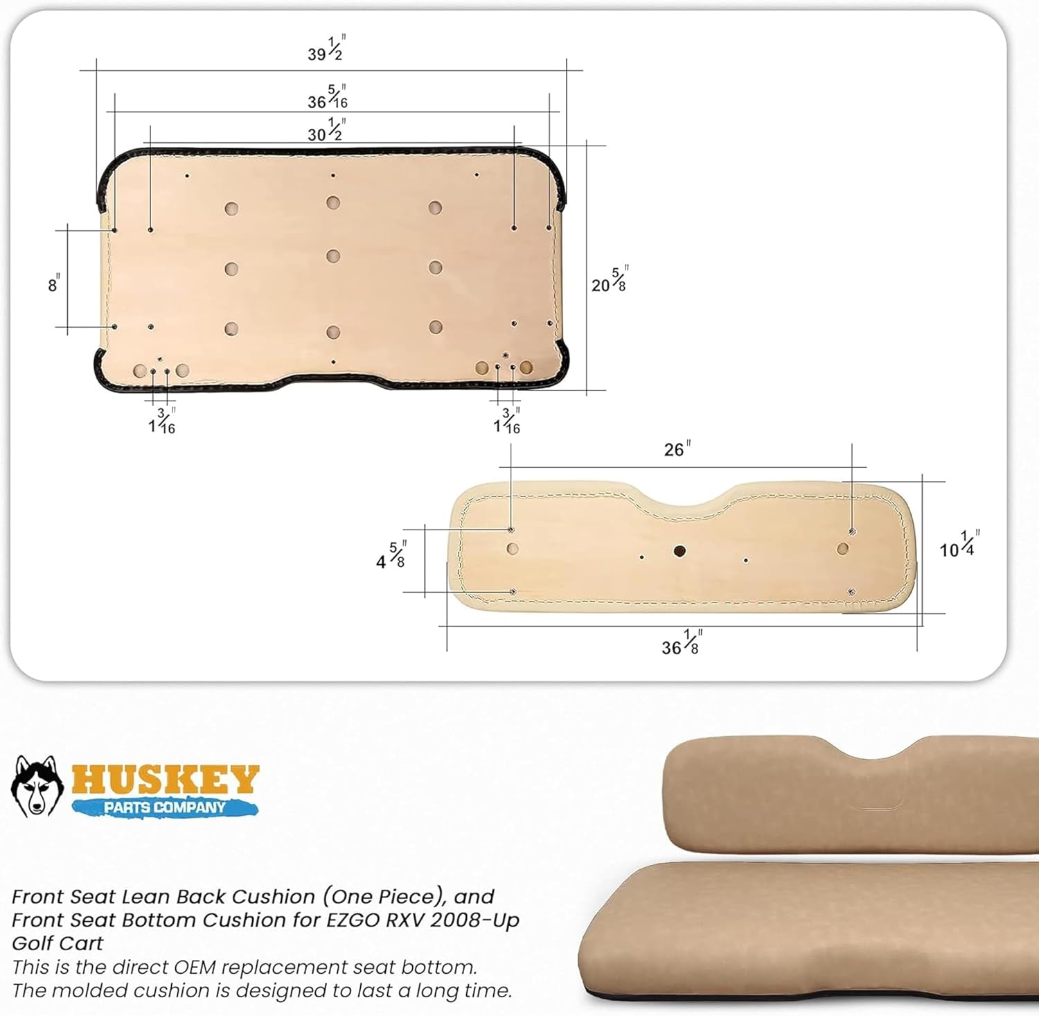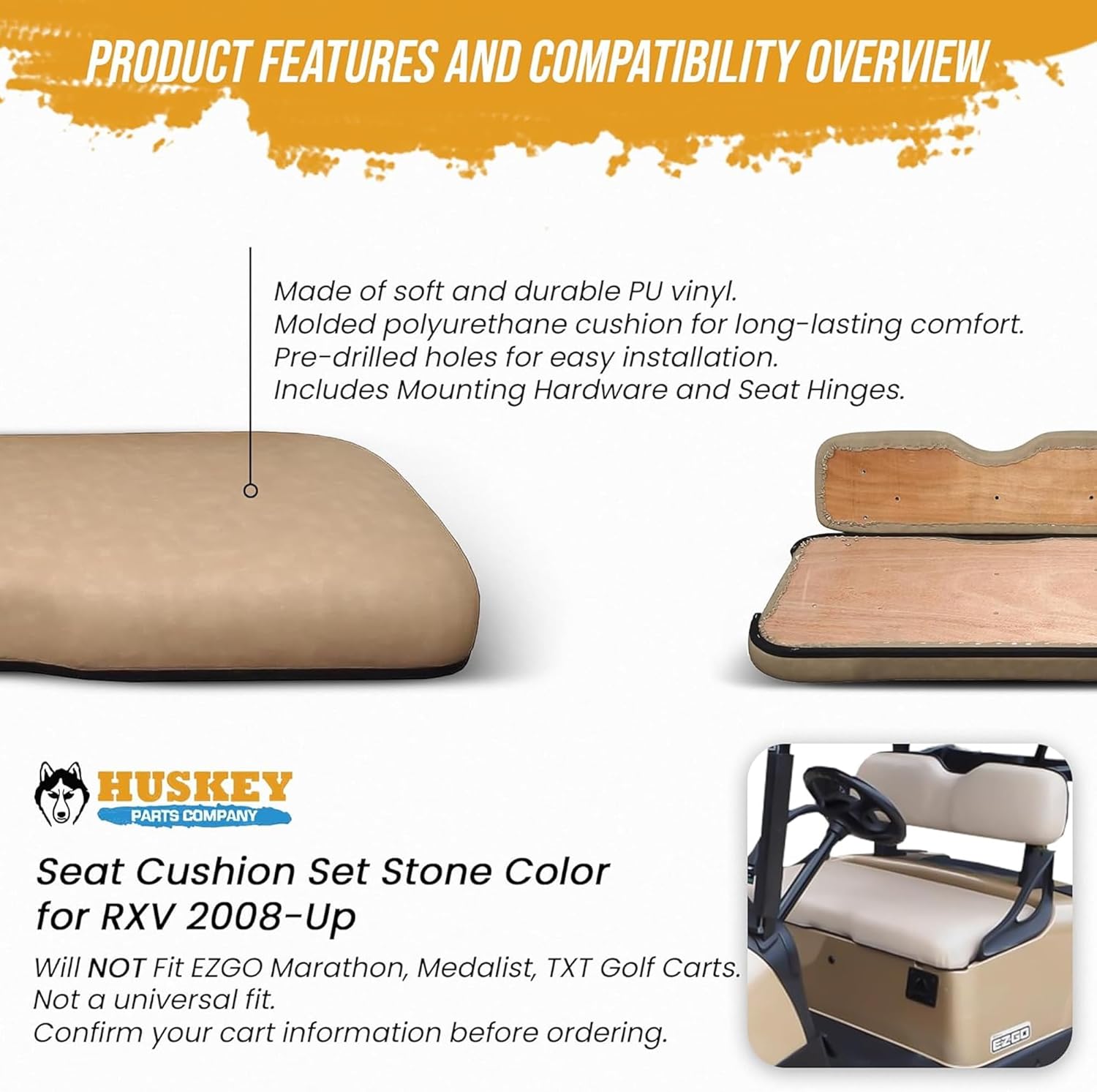 Huskey Parts Company Golf Cart Seat Cushion Set for EZGO RXV 2008-Up, Black Color, Front Seat Lean Back & Bottom Replacement with Mounting Hardware & Hinges