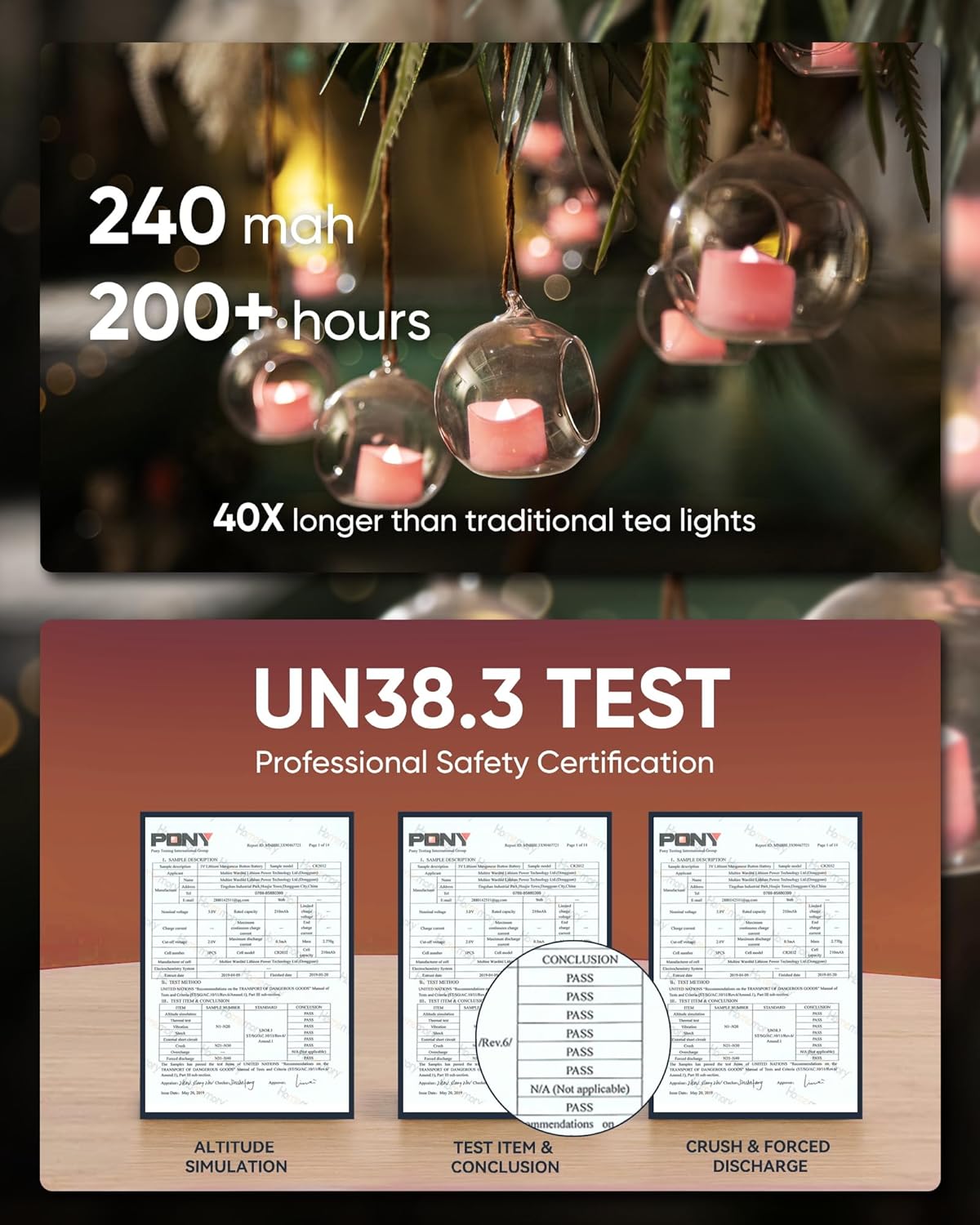 - 200+HOUR: 240mah battery capacity provides 200 hours of illumination, 40X to traditional wax tea lights, ensuring the tea candles work last throughout your events/party/holidays