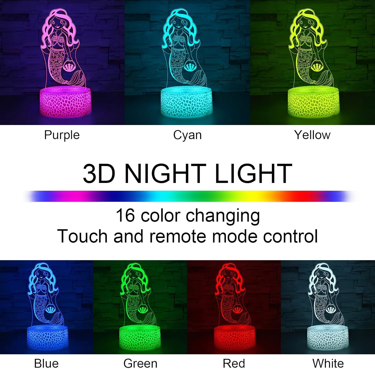- 【Interesting 3D Visual Effect】: The night lights are made with 3d laser engraving technology to create a gorgeous optical gorgeous 3d illusion with a realistic mermaid shape design,It is perfect