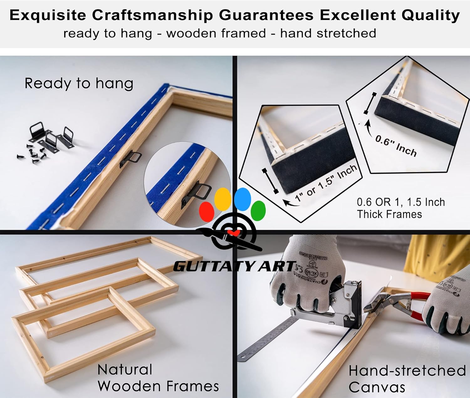 - π Amazing High-Quality Canvas and Frame - Museum-quality cotton canvas stretched on a 1.5" stretcher bars (not the thin 3/4 like most) wooden frame. The image continues around the sides and is stapled on the back. There is a black metal hook(s) already mounted on the wooden bar of each panel of the canvas for easy hanging. Each canvas artwork will be wrapped in a protective bag and then packaged in a paper box to ensure that it can reach you in perfect condition.