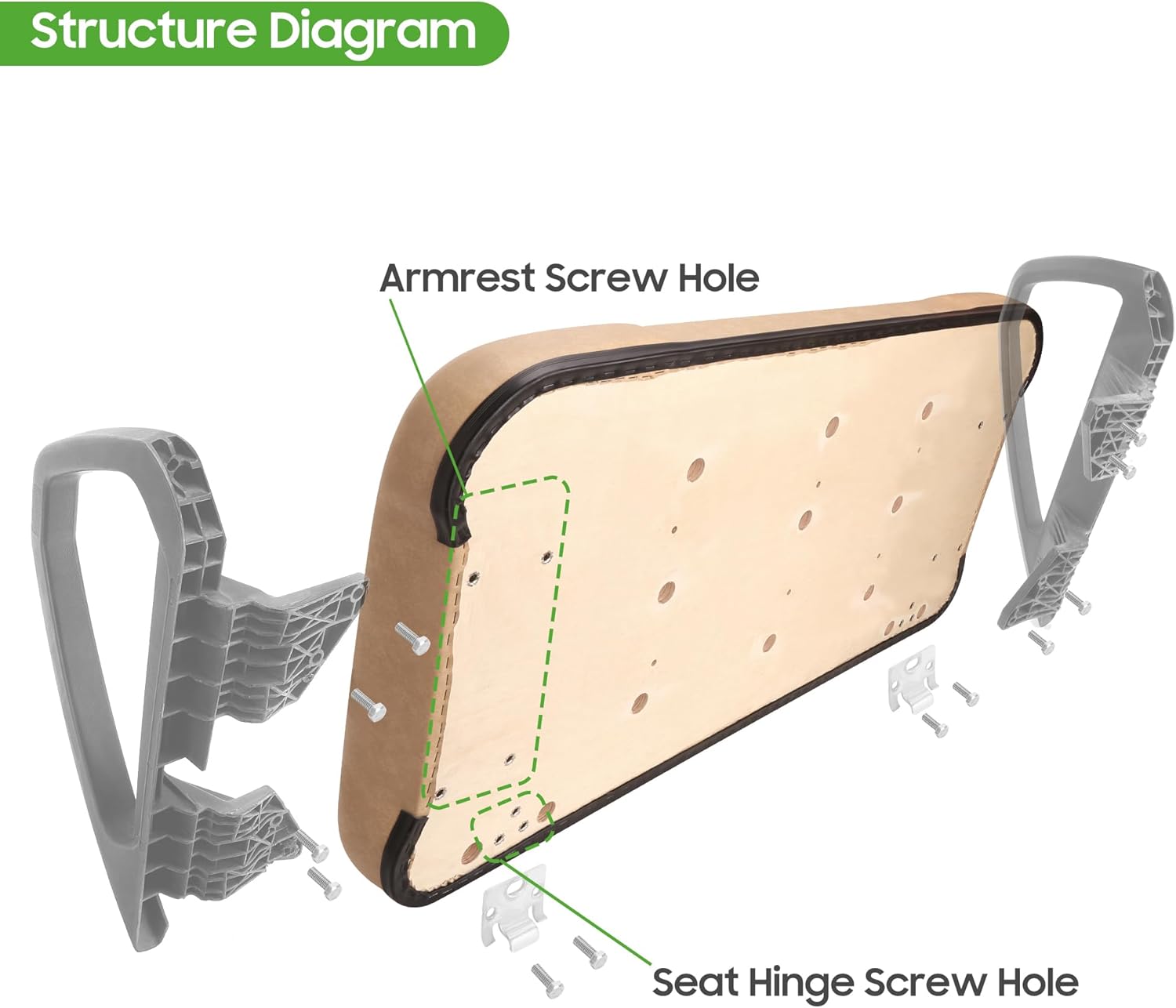 - Includes (1) seat bottom assembly, (1) seat back assembly, pre-installed screw holes, including (18) screws (PLASTIC BACK COVER IS NOT INCLUDED)
