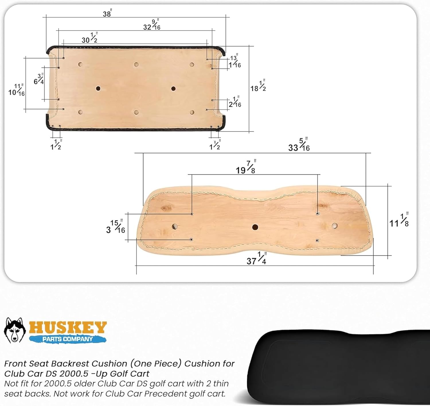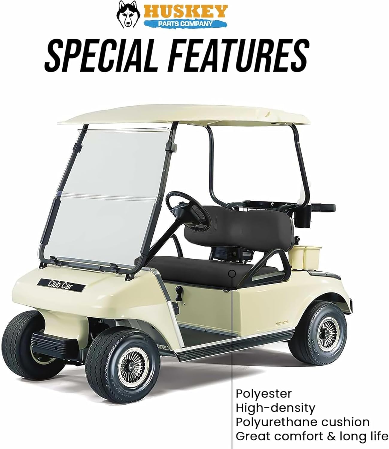 Huskey Parts Company Golf Cart Seat Cushion for Front Seat Lean Back, Black Color for DS 2005 and up, Golf Cart Front Seat Replacement with Mounting Hardware