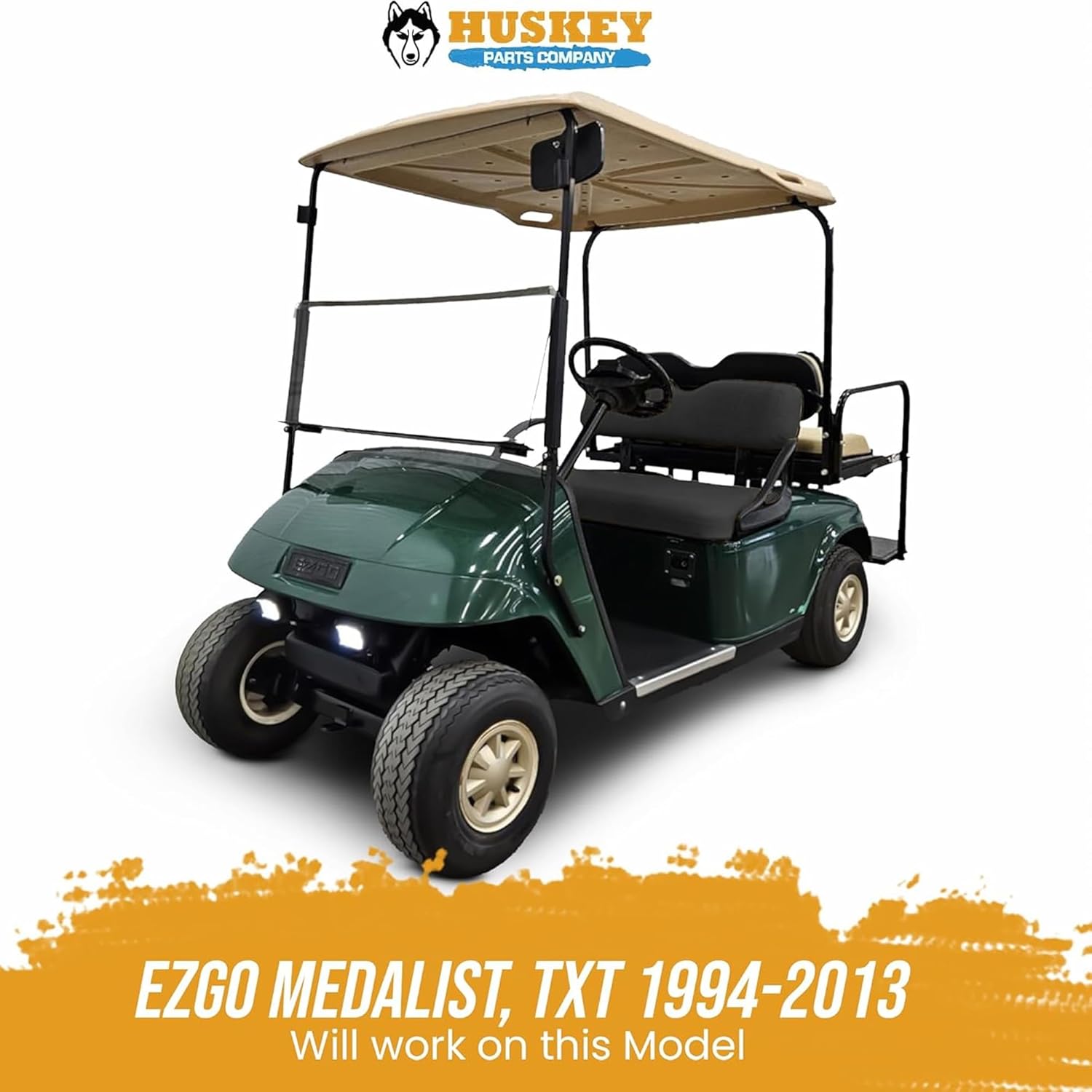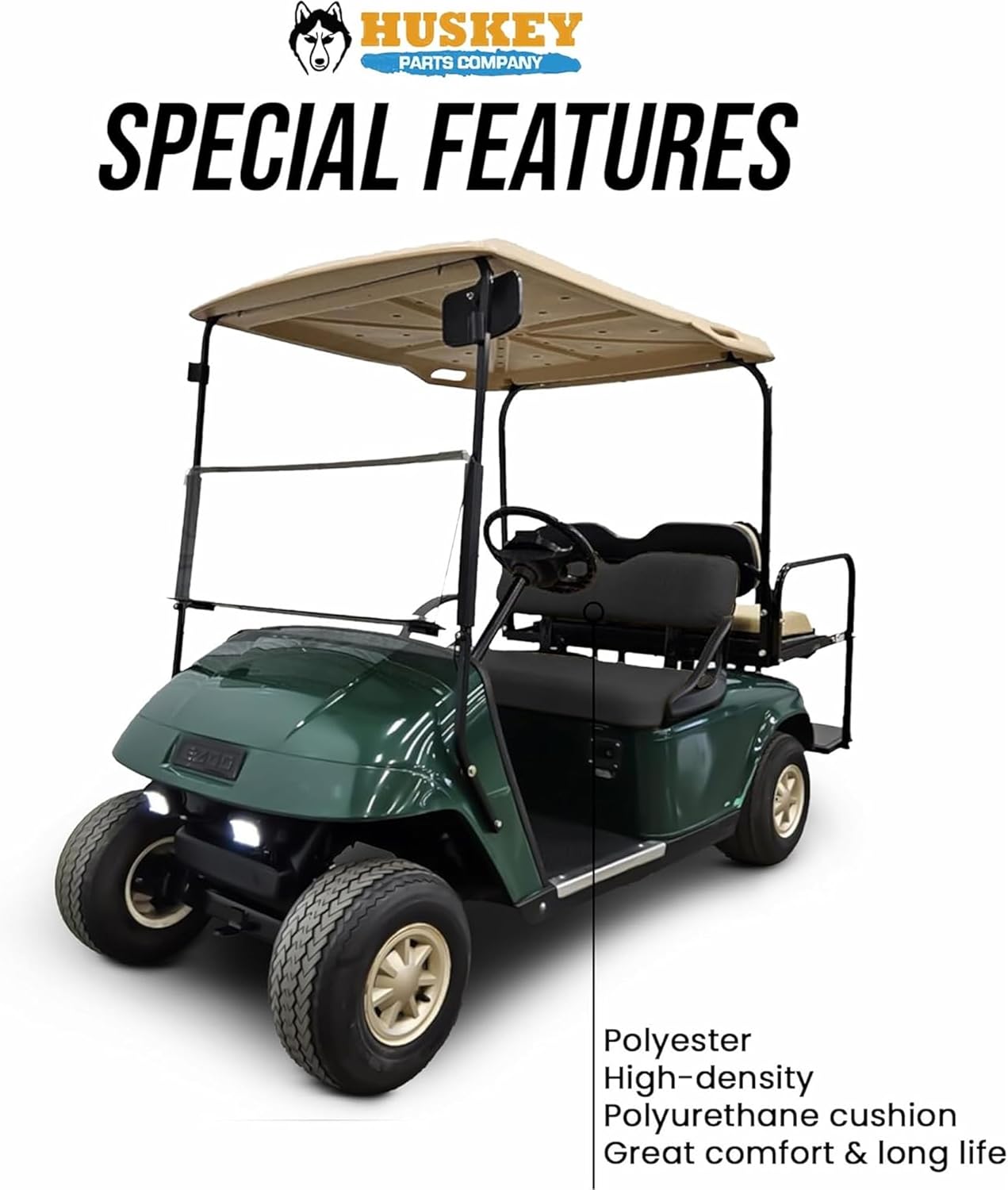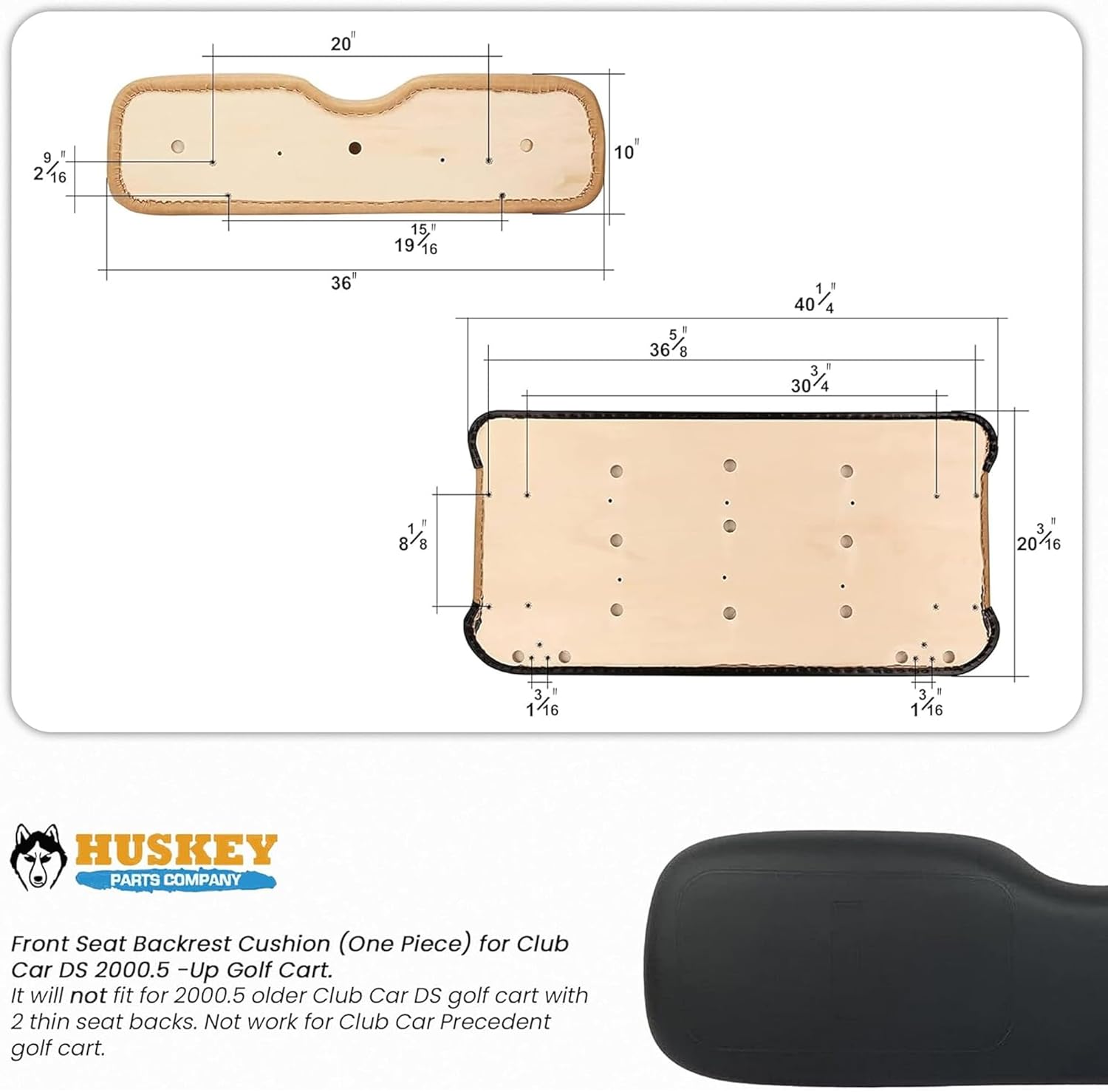 Huskey Parts Company Golf Cart Seat Cushion for Front Seat Lean Back, Black Color for EZGO Medalist, TXT 1994 to 2013, Golf Cart Front Seat Replacement with Mounting Hardware