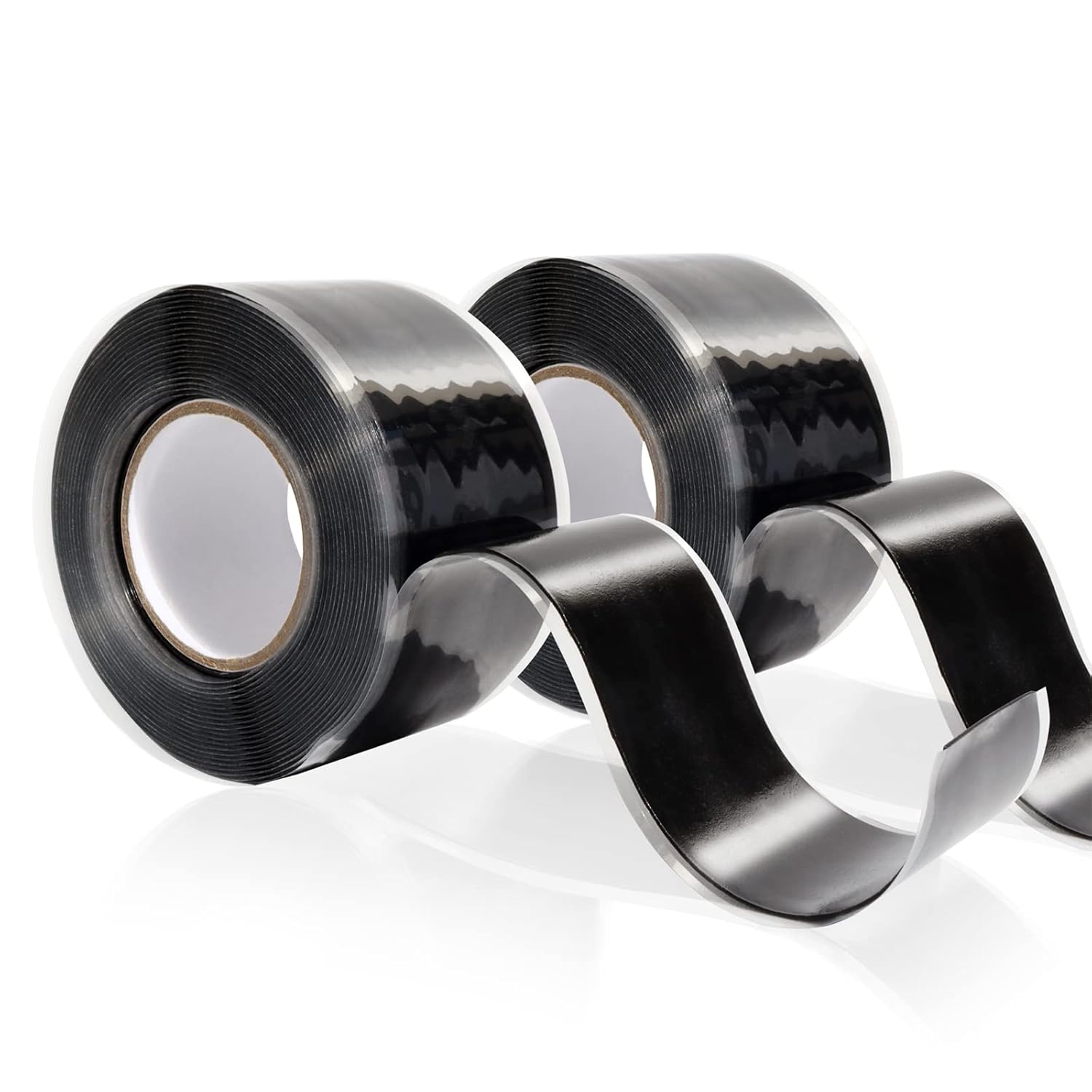 2 Rolls 1IN X 10FT Grip Tape,Silicone Tape for Handles,Self Fusing Silicone Grip Wrap for Fishing Pole,Racket,Pull Up Bar,No Adhesive,Black