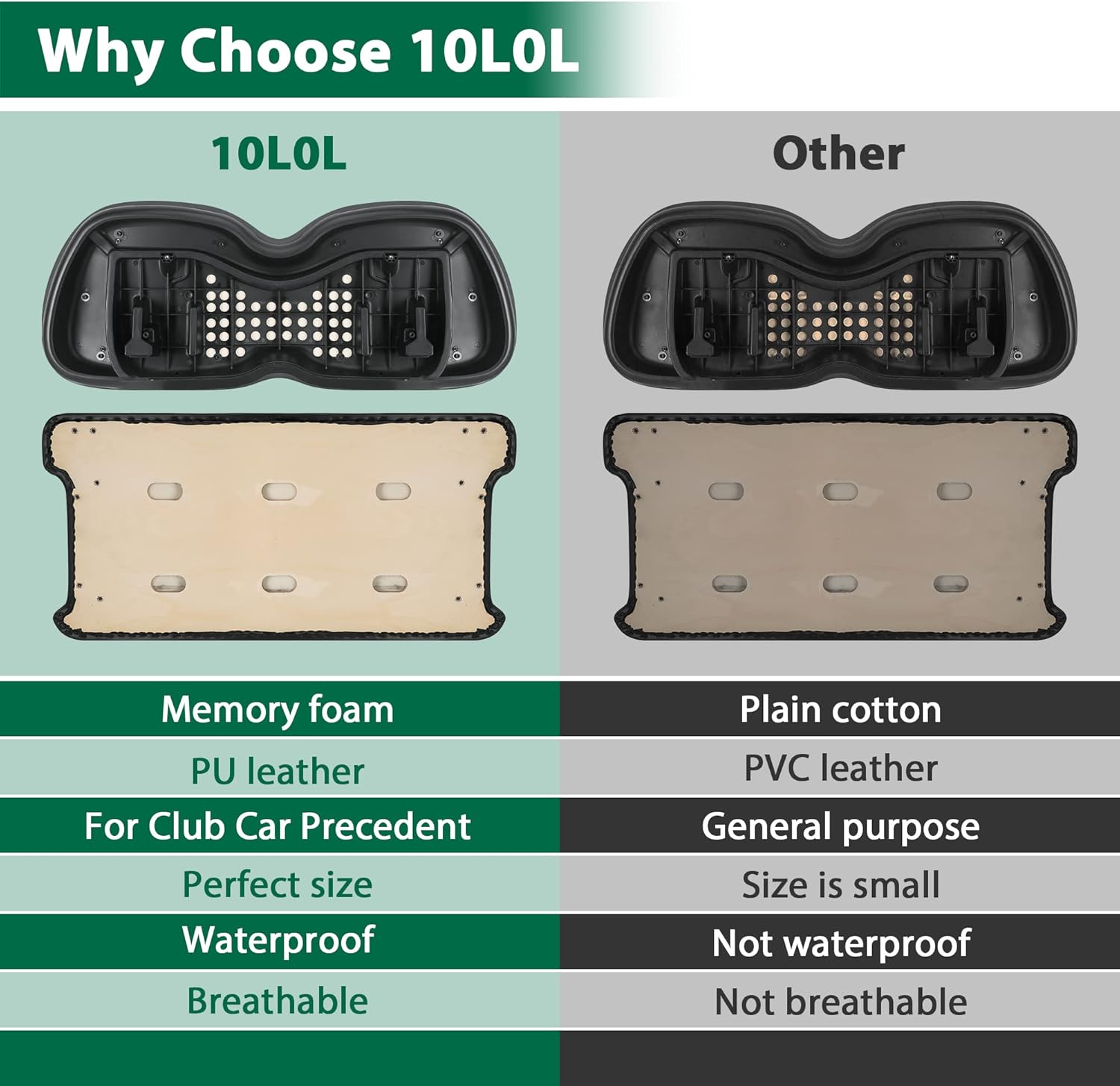 10L0L Golf Cart Seat-Front Seat Cushion & Backrest for Golf Cart Club Car Precedent (2012-up) Premium Sponge Comfortable Soft (Black)