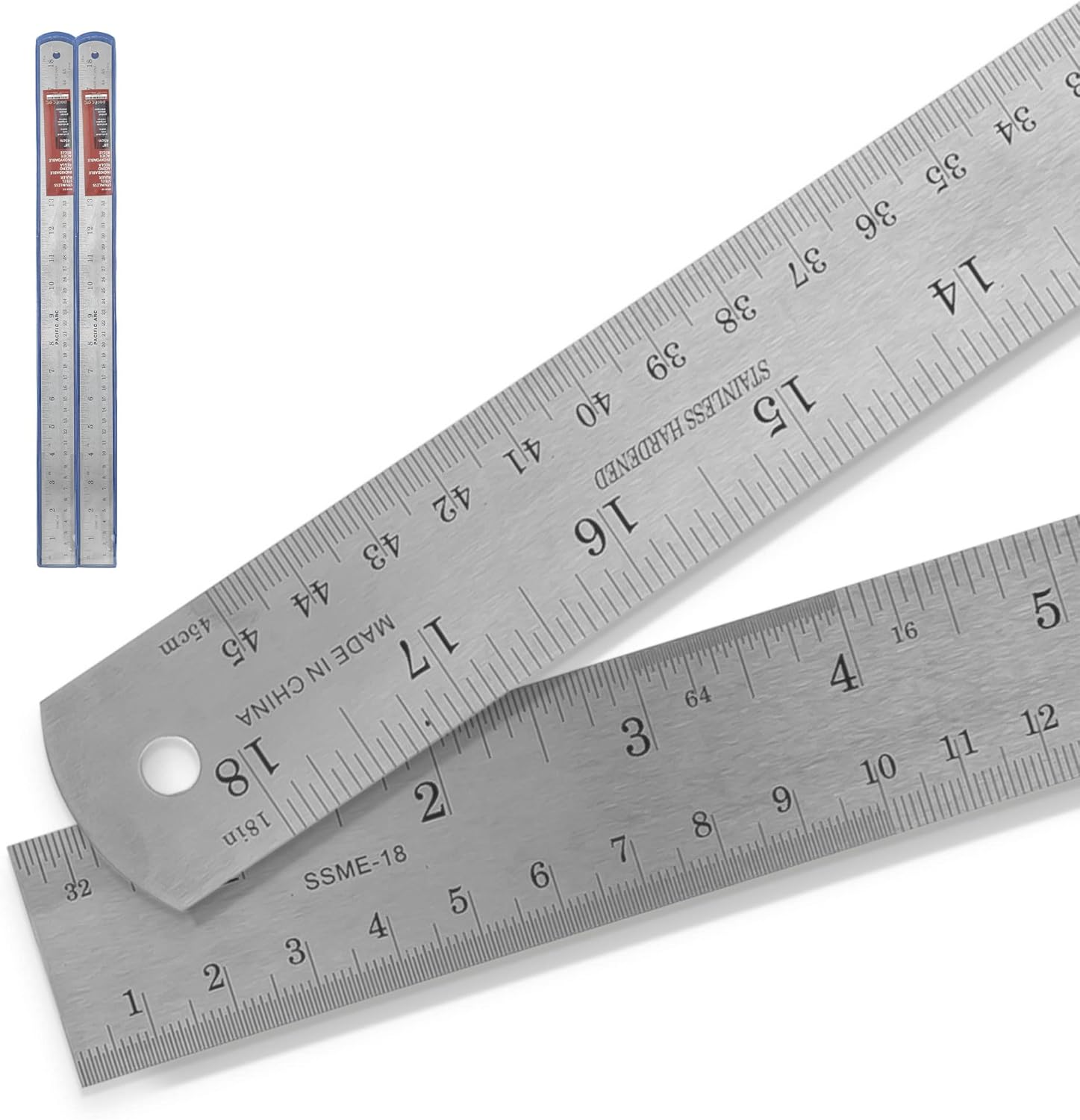 2 Pack - Pacific Arc 18 Inch Stainless Steel Ruler with Inch/Metric Conversion Table