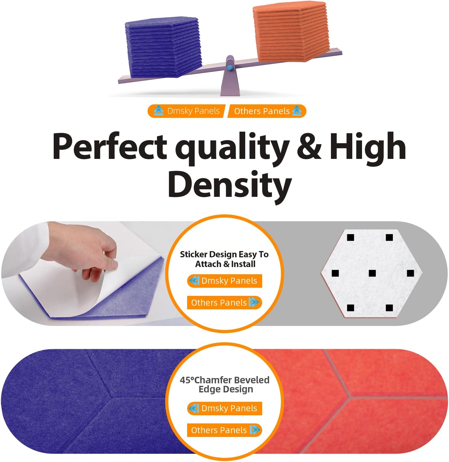 - đ¸ăEasy to and InstallăHigh density sound proof foam panels not only enhance the acoustics of the room, but also create different styles of decorative wall art in your favorite spaceThe biggest difference with other acoustic panels on the market is that our panels come with self-adhesive.Just peel off the protective film and stick it to the walls ,door and ceilings.