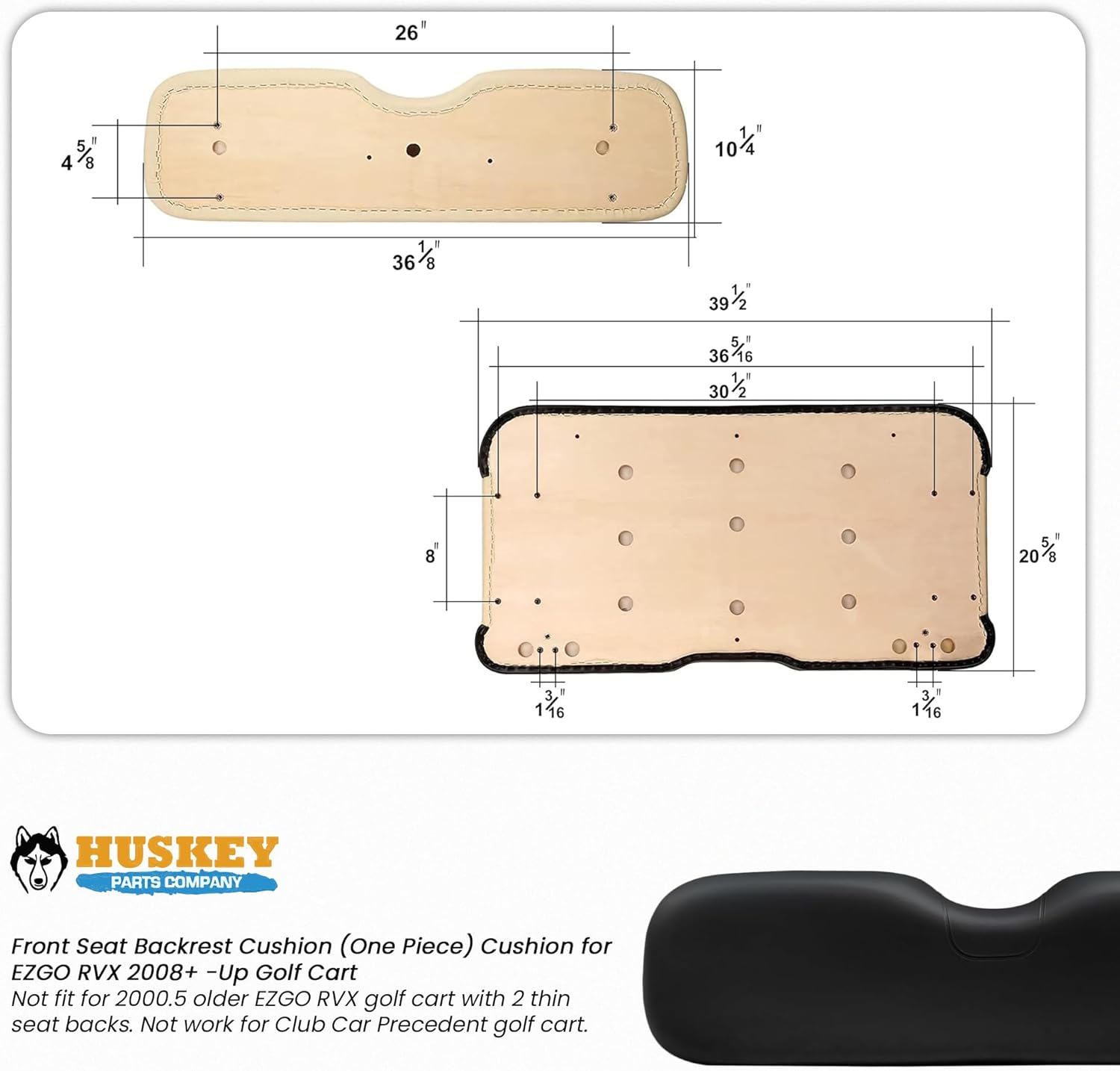 Huskey Parts Company Golf Cart Seat Cushion for Front Seat Lean Back, Black Color for EZGO RXV 2008+, Golf Cart Front Seat Replacement with Mounting Hardware