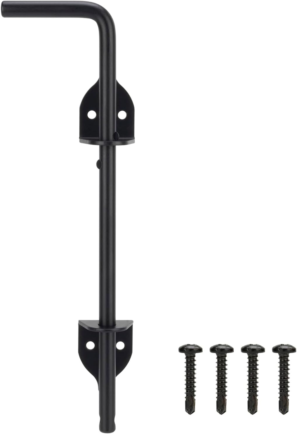 - 【Easy to Install】 This gate latch can be easily installed in a few minutes. Suitable for security and reinforcement of gates. Measure the installation location, mark the hole punching location with a pen, punch the hole, and you can use it. This heavy duty door drop bar includes 1 Pcs drop rod, 1 Pcs bolt retainer, 2 Pcs guider brackets and 6 Pcs screws.