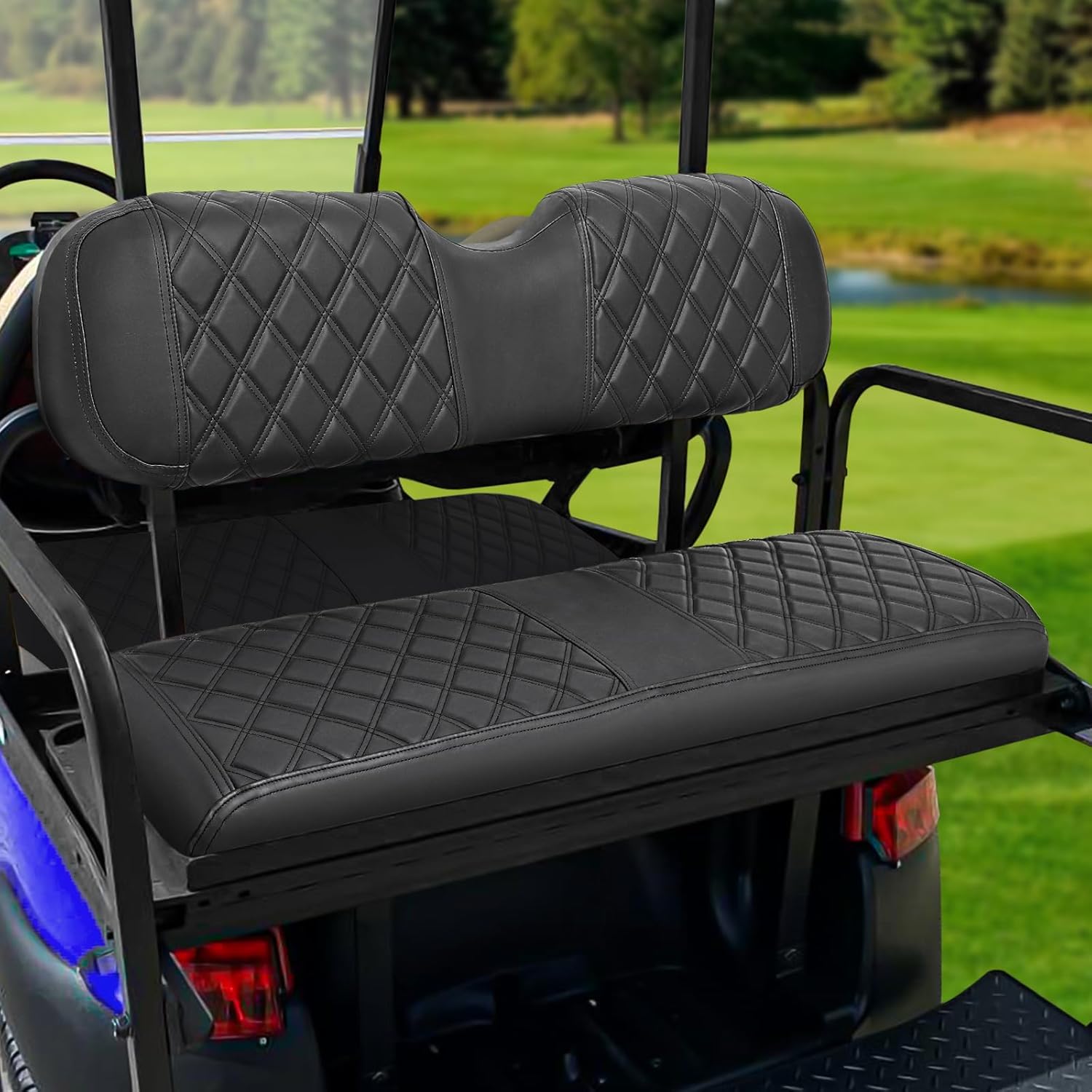 iLSKW Golf Cart Seat Covers for Rear Seat Fit Club Car EZGO Yamaha, Thinck Vinyl Leather with Convex Diamond Texure, Comfortable, Support Back,Breathable,Anti-Fading