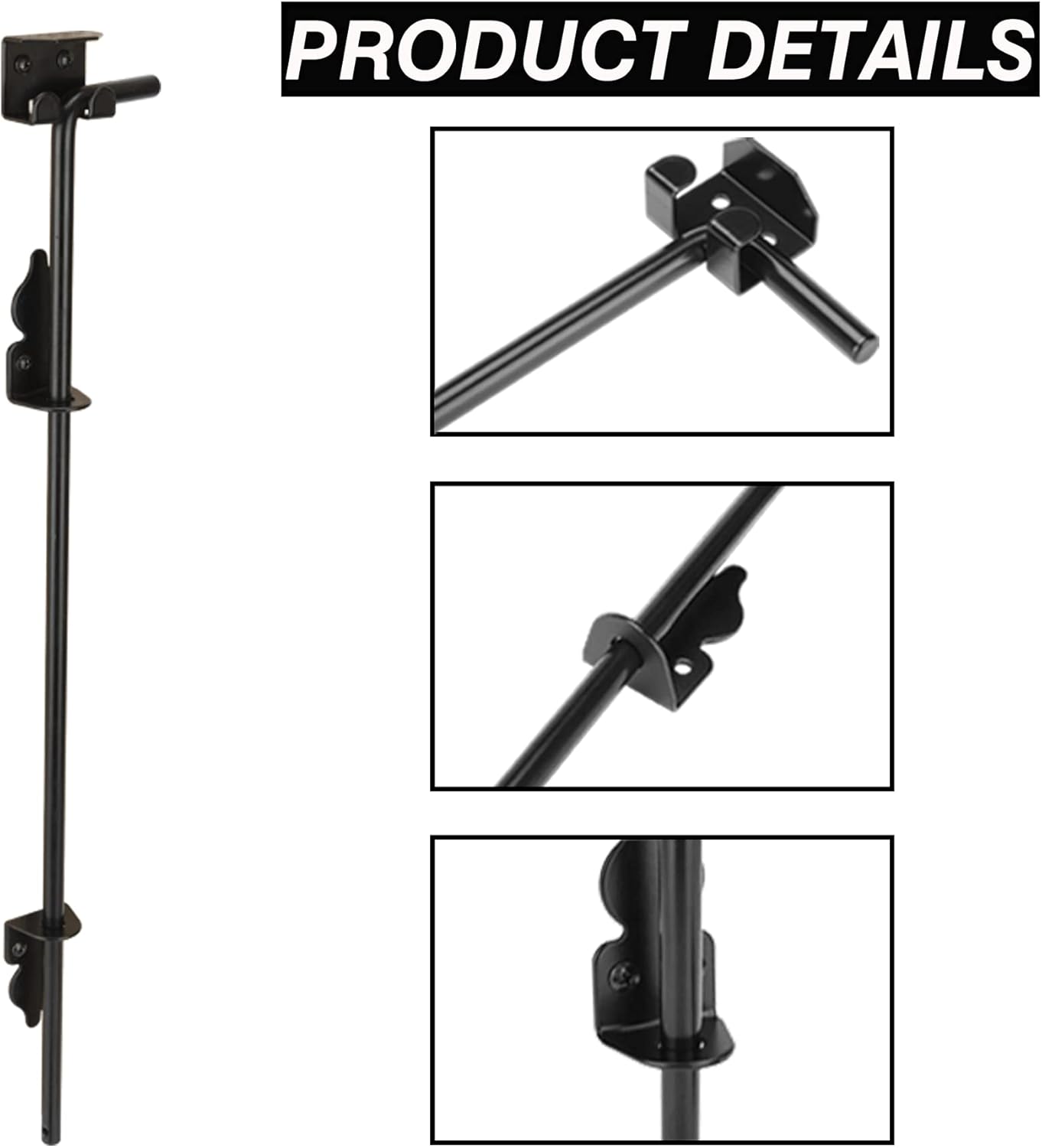 - 【Indoor & Outdoor Use】 The gate drop rod is thicker than similar cane bolts on the market. Indoors, it can be used on interior fences to separate interior spaces and prevent accidents with children, pets, etc. In outdoors, it is widely used for wood fence doors, metal doors, iron doors, vinyl doors, etc. It can be used to fix single or double doors and gates.