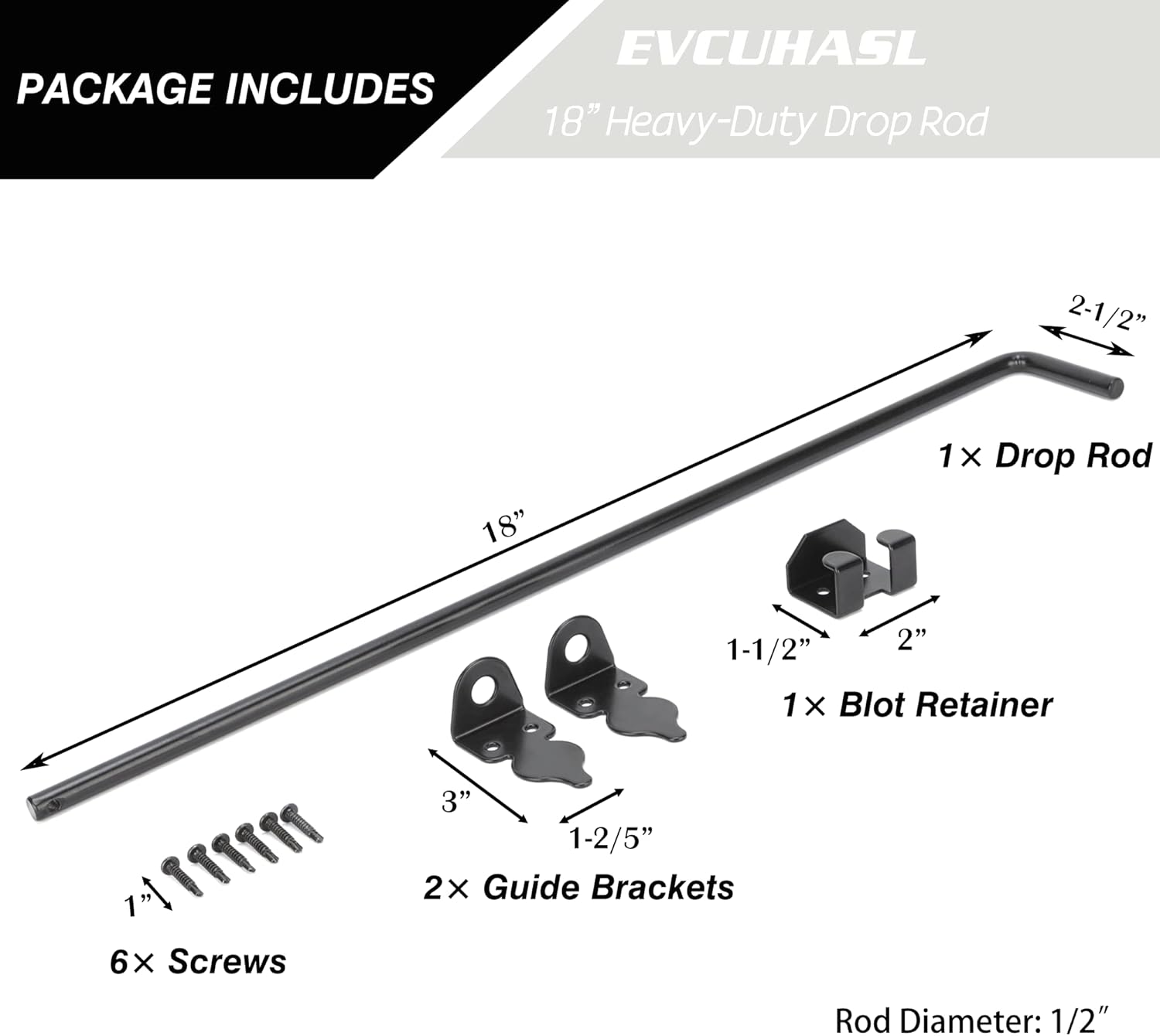 - 【Easy to Install】 This gate latch can be easily installed in a few minutes. Suitable for security and reinforcement of gates. Measure the installation location, mark the hole punching location with a pen, punch the hole, and you can use it. This heavy duty door drop bar includes 2 Pcs drop rods, 2 Pcs bolt retainers, 4 Pcs guider brackets and 12 Pcs screws.