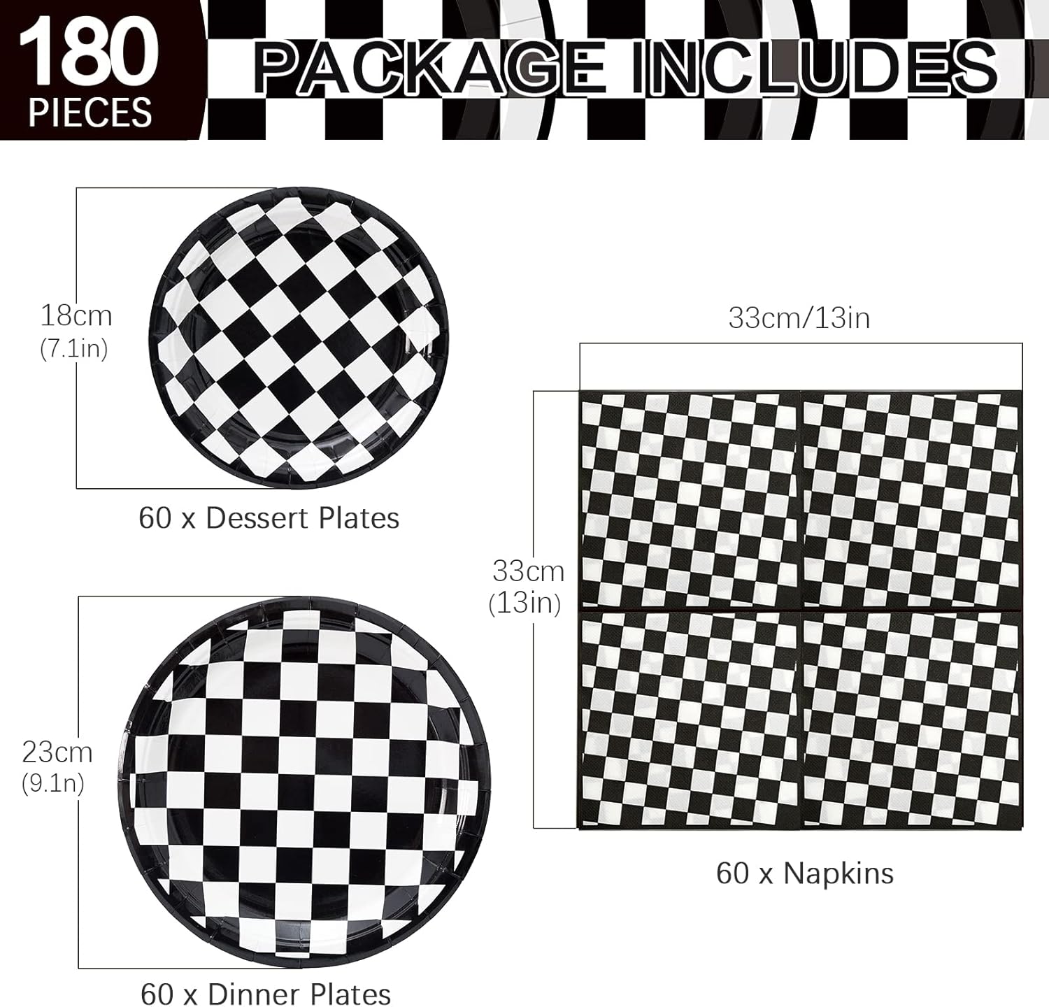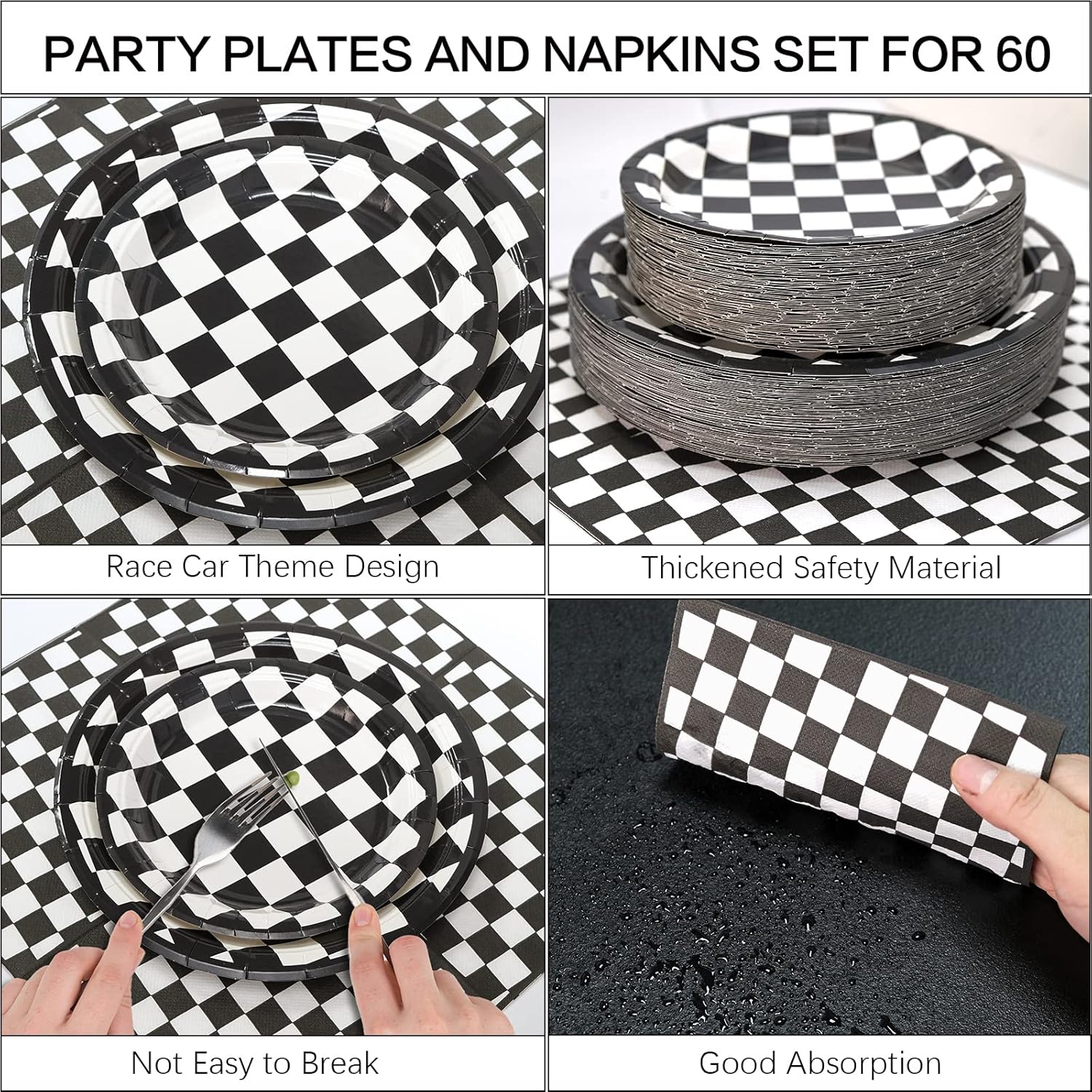 180Pcs Race Car Party Supplies Paper Plates and Napkins Serve 60 Disposable Tableware Set for Birthday Party Decorations Game Day Family School Holiday Sports Events