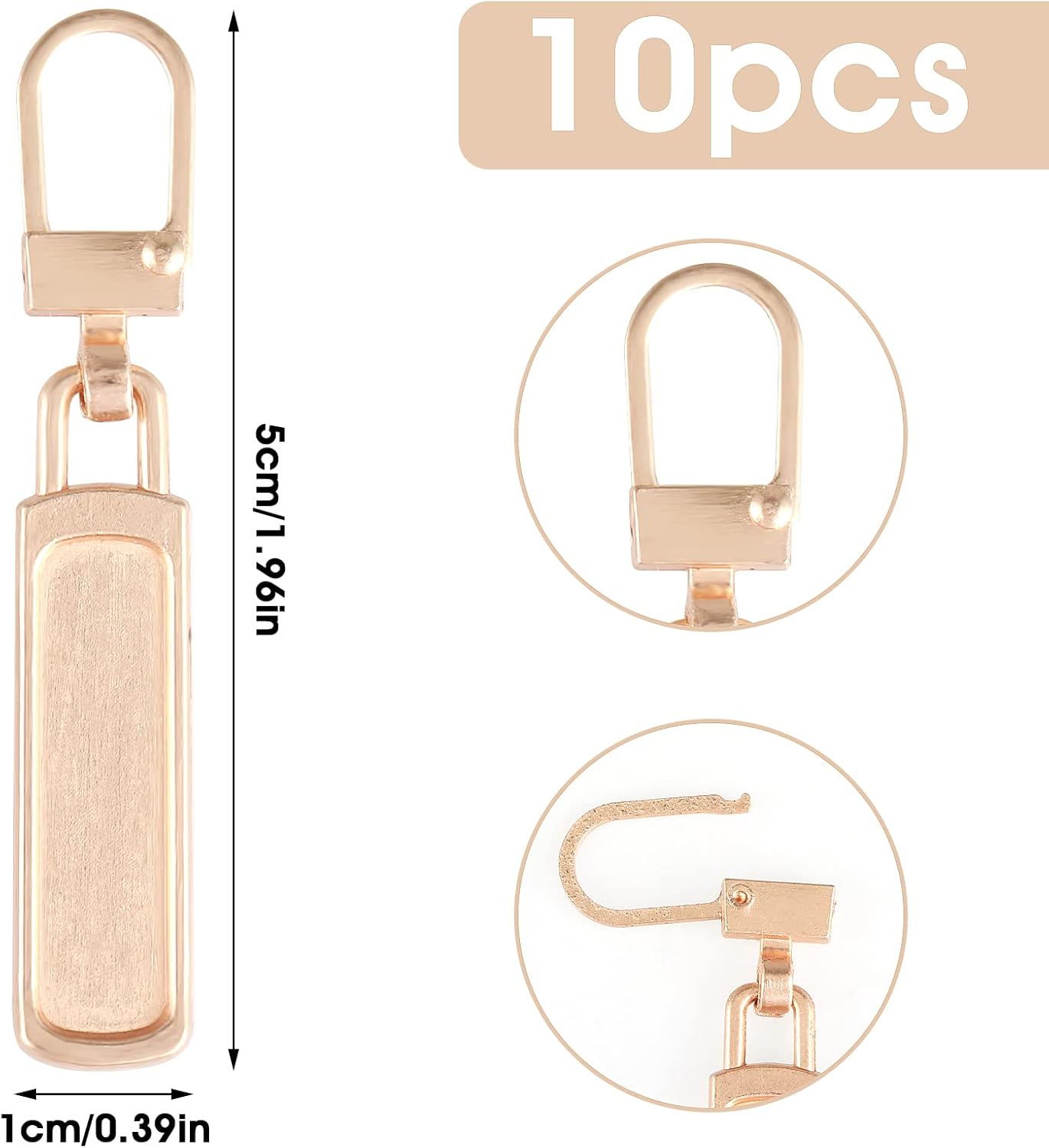 - Package Contents: You will receive 10 zipper pulls replacement, a quantity sufficient for your replacement needs. Zipper pull measures approximately 1.96 × 0.39 inches and it fits into the small hole, allowing it to easily fit through the hole in the zip slider.