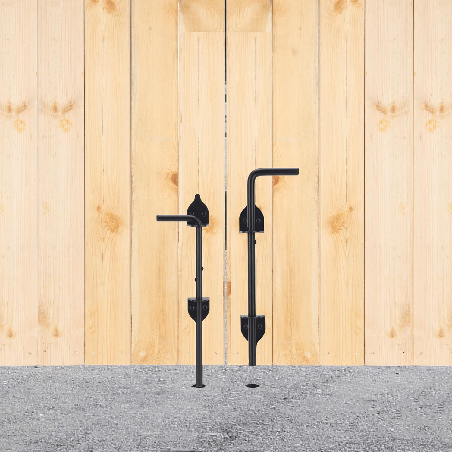 12" Cane Bolt Heavy-Duty Drop Rod for Gate, Gate Ground Latch for Wooden Fences Metal Gates Doors, Metal Gates Doors Stopper for Gate Ground, Wrought Iron Gate Latches, Black Finish(2 Pack)