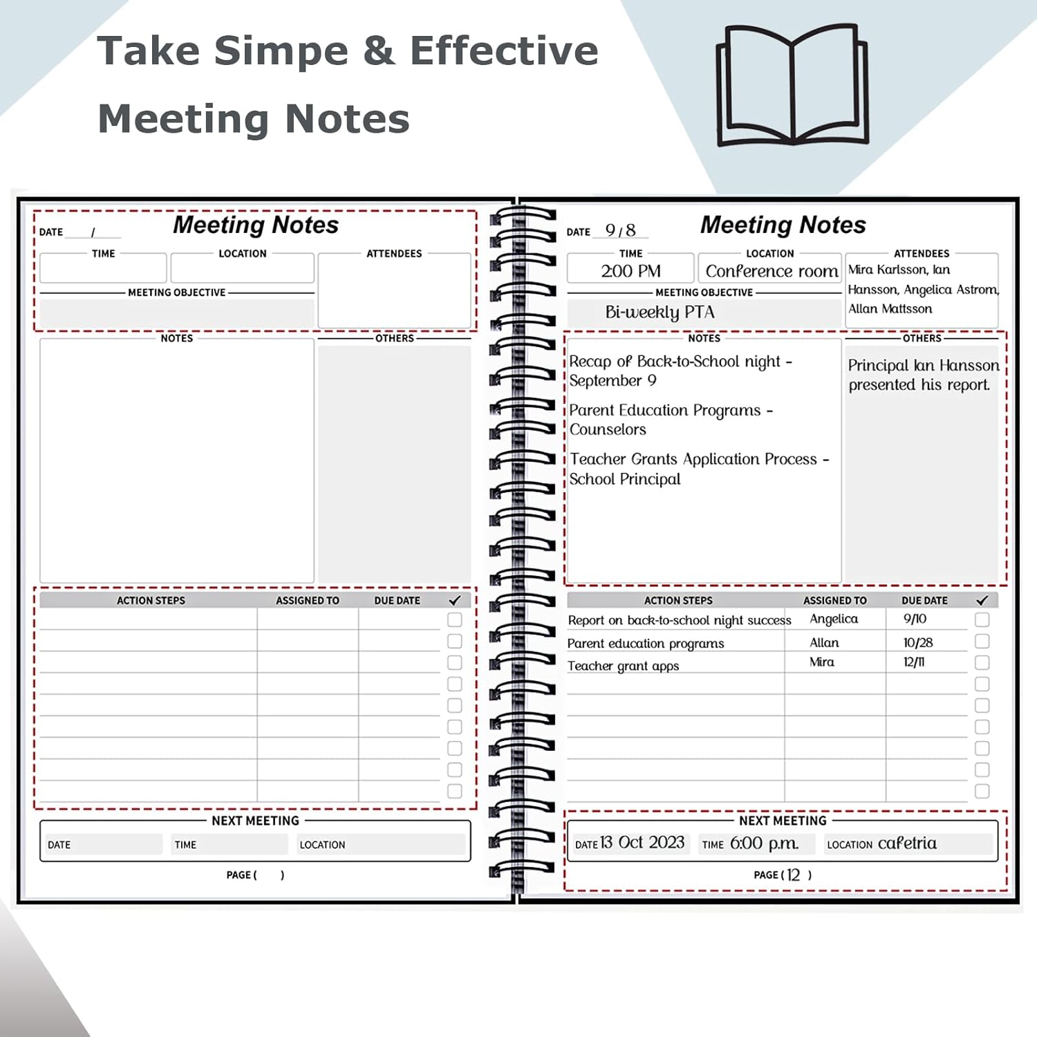- 【Professional Notebook Planner】Prevent losing important information by reviewing team meetings with this business notebook. Each page is neatly sectioned, ensuring that everything is documented easy to keep track of