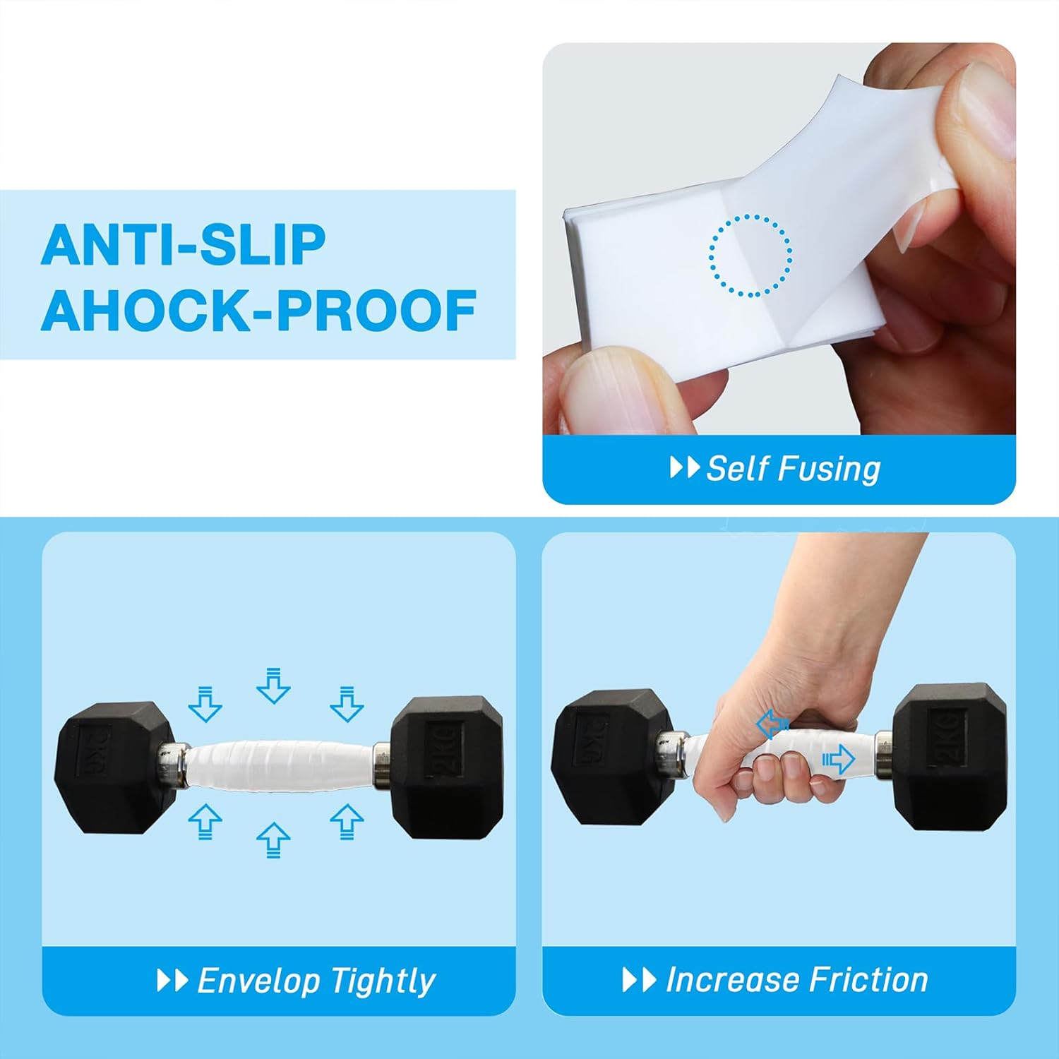 - WIDELY USED:Grip tape for handles is suitable for anti-slip and shock-proof treatment of handles of sports fitness equipment and household tools. Tape can increase friction and grip, increase comfort, convenience, and improve work efficiency.Also you use it to wrap fishing rod handles for better grip ability.
