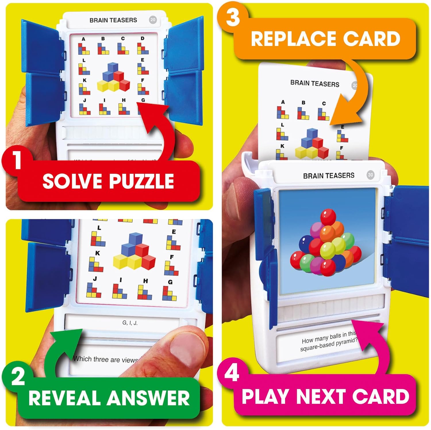 100 PICS Brain Teasers Travel Game - Solve 100 Puzzles | Flash Cards with Slide Reveal Case | Card Game, Gift, Stocking Stuffer | Hours of Fun for Kids and Adults | Age 6+