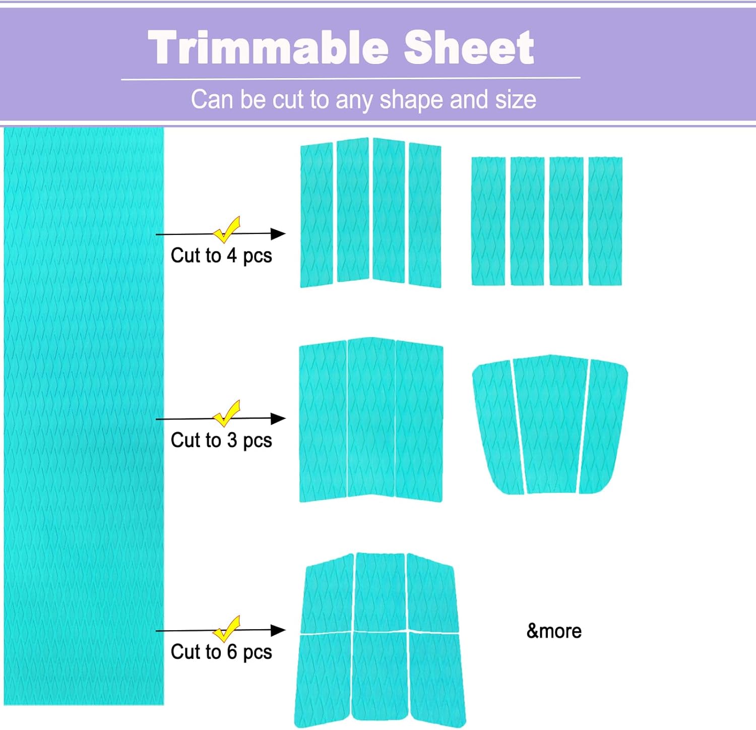 - Trimmable EVA Pad - EVA foam boat decking sheet, can be trimmable, you can DIY to any size/shape to fit your surfboard and decking. Also have 6 kinds of color you can choose, making your surfboard special and charming. DIY SURFING TRACTION PAD