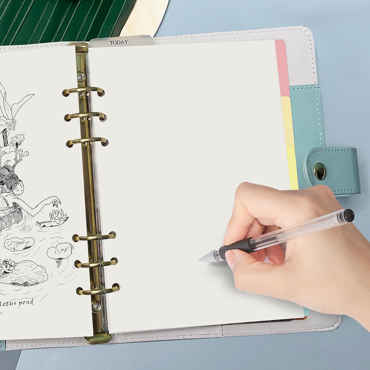 - Included in the package: 2 packs of plain blank insert paper, 1 receipt pouch, 1 4-pocket card bag, 1 pack of colorful 5-sheet paper dividers, 1 A5 Today bookmark ruler with inch units, and 200 colorful index stickers.